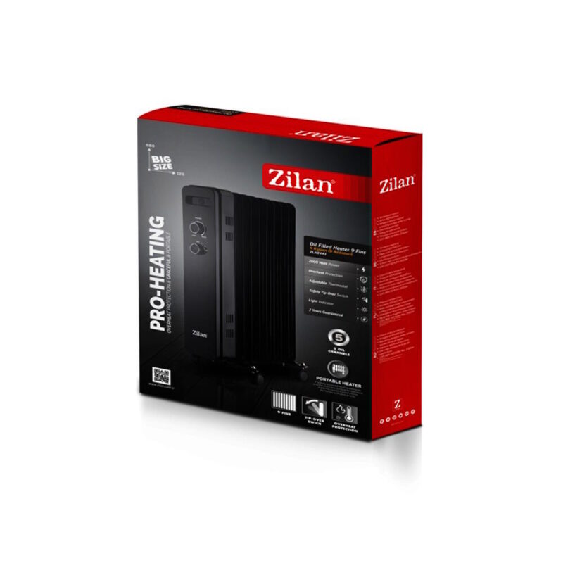 Calorifer electric Zilan ZLN8443 Negru, 9 elemnti, putere 2000W, termostat reglabil