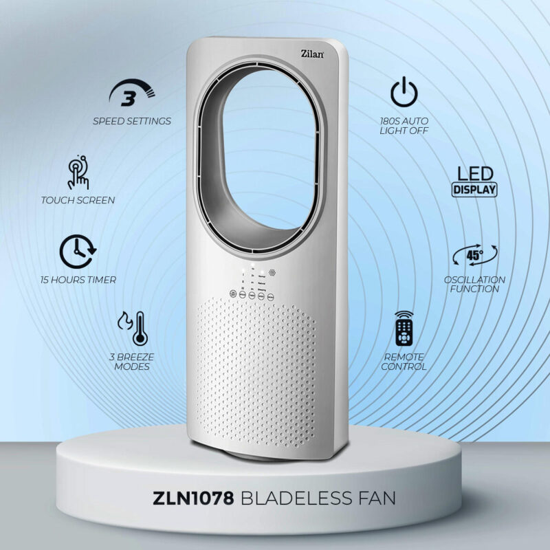 Ventilator fara palete Zilan ZLN1078, 50W, Timer, 3 trepte de viteza, 3 moduri presetate