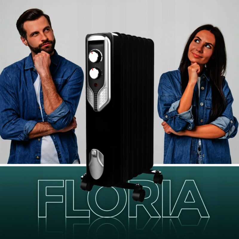 Calorifer electric Floria ZLN-3666,Negru 2500 W, 11 elementi, 3 trepte de putere, Termostat reglabil, Protectie supra-incalzire, Indicator luminos,