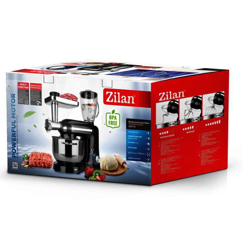 Mixer, blender si masina de tocat 3 in 1 Zilan ZLN1772 Negru, 6+1 nivele de control al vitezei, 1400W