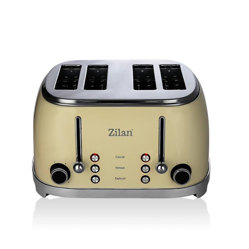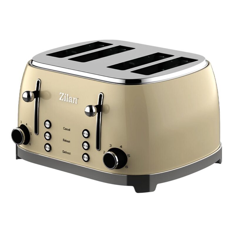 Prajitor de paine Retro Zilan ZLN1214, 4 felii de paine, 1500W, 6 trepte, dezghetare, reincalzire, picioruse antiderapante