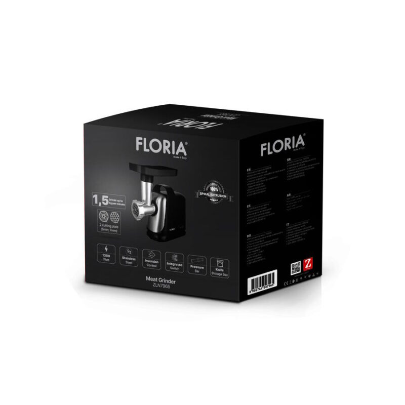 Masina de tocat Floria ZLN7965 Neagra, putere 1300W, doua site, functie de revers, lama din otel