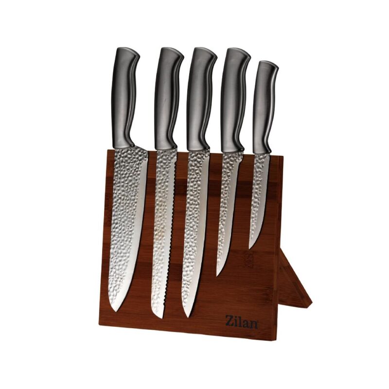 Set cutite 6 piese Zilan ZLN1641, Suport inclus din bambus, Cutite din otel inoxidabil 3CR13, Compatibil masina de spalat vase