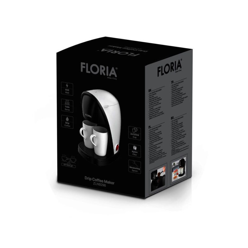 Aparat de facut cafea Floria ZLN9298, filtru de nailon, cupa pentru masurat, 2 cesti incluse, Alb