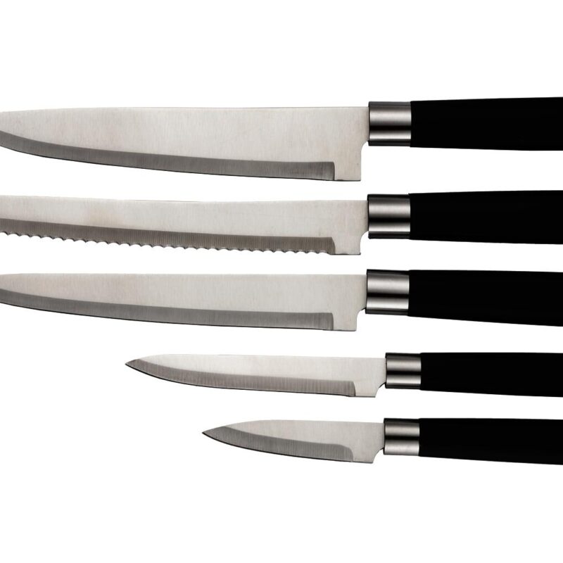 Set cutite 6 piese RETRO Zilan ZLN1609, Suport inclus, Otel inoxidabil 3CR13, Compatibil masina de spalat vase, Negru
