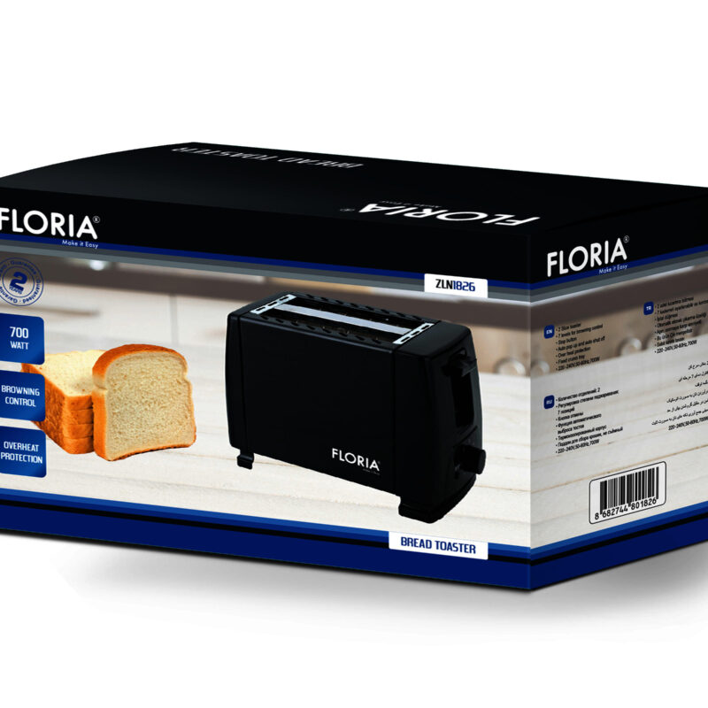 Prajitor de paine Floria ZLN1826 Negru, 700W, 7 nivele de control al temperaturii, buton de oprire