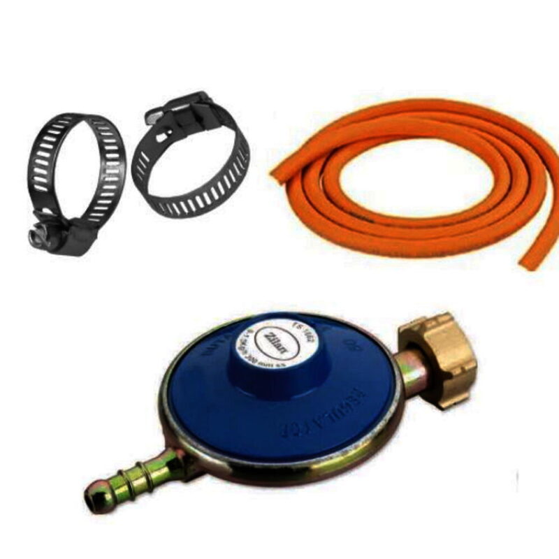 Pachet – 2 metrii furtun gaz + regulator presiune (ceas) + 2 buc coliere