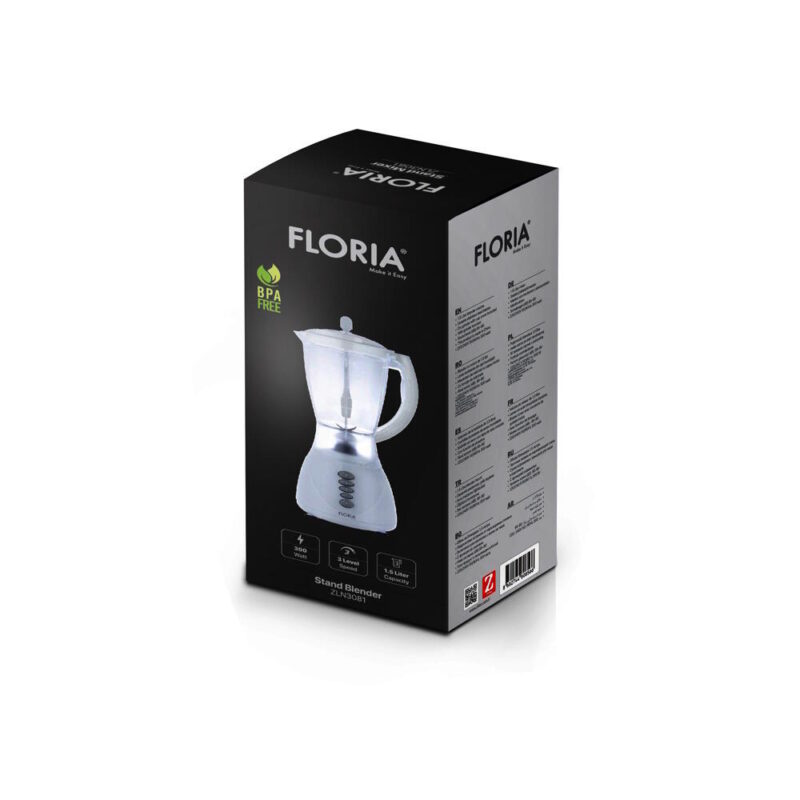 Blender FLORIA ZLN3081 ALB, Putere 300W, capacitate 1.5L, 3 viteze, Functie pulss, vas de plastic