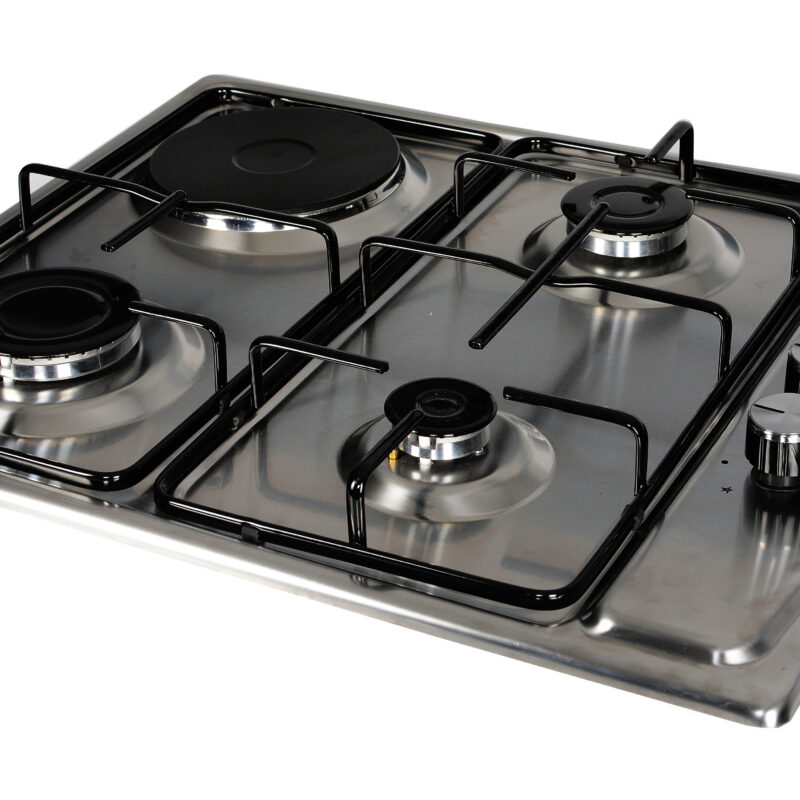 Plita incorporabila Zilan ZLN-1918 GPL si Gaz natural 58×50 cm, 3 ochiuri, 1 ochi electric, duze de schimb incluse, aprindere electrica, Inox