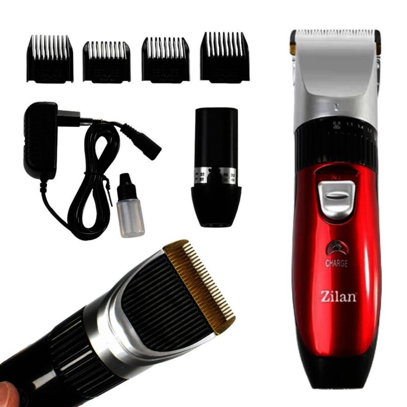 Aparat de tuns profesional Zilan ZLN1246 fara fir, cu acumulator de schimb inclus, 4 marimi de schimb, perie de curatare si ulei incluse, Rosu