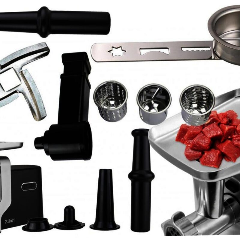 Masina de tocat carne multifunctionala ZILAN ZLN0126, Negru/Gri 2100 W, 3 viteze, Accesorii pentru feliat legume, Accesoriu pentru carnati, Accesorii pentru feliere si maruntire, Cutit inox,