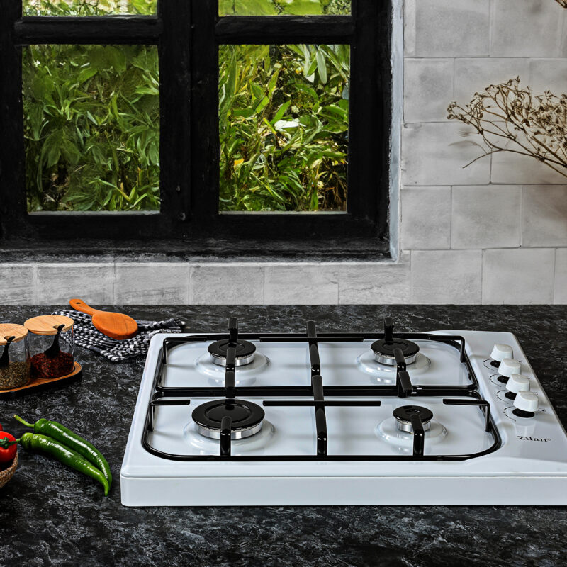 Aragaz 4 ochiuri ZILAN Alb ZLN-1518, Butoane laterale, Emailat