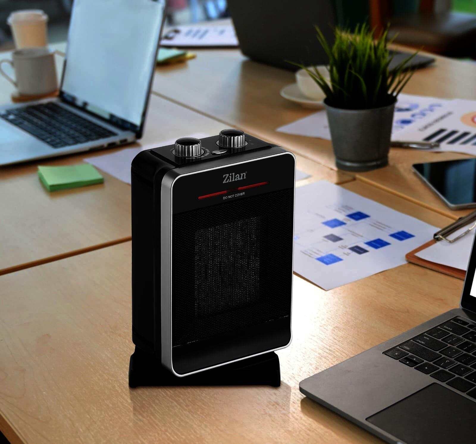 Aeroterma Zilan cu 2 trepte de reglare temperatura+aer rece, grila ceramica, termostat reglabil si indicator luminos de functionare, prevazut cu functie de oscilatie si sistem de protectie impotriva supraincalzirii si a rasturnarii, maner pentru transport. Se poate utiliza si pe timpul verii pentru ventilatie. Dimensiuni: 20x15x28 cm.CARACTERISTICI TEHNICEDesignCompactRecomandat pentru incaperi pana la20 m²Destinat pentruInteriorFunctiiFunctionare silentioasa