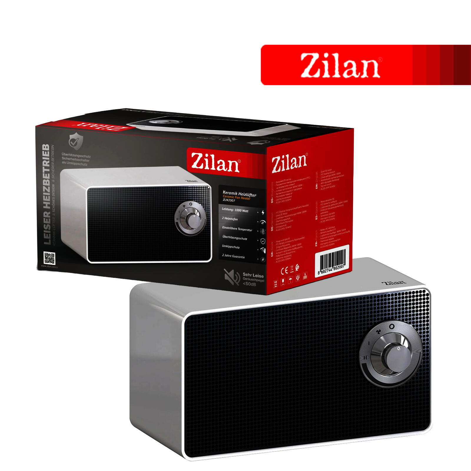 Aeroterma ceramica Zilan ZLN2007 Alb, 1000W, 2 nivele de incalzire, oprire automata la rasturnare