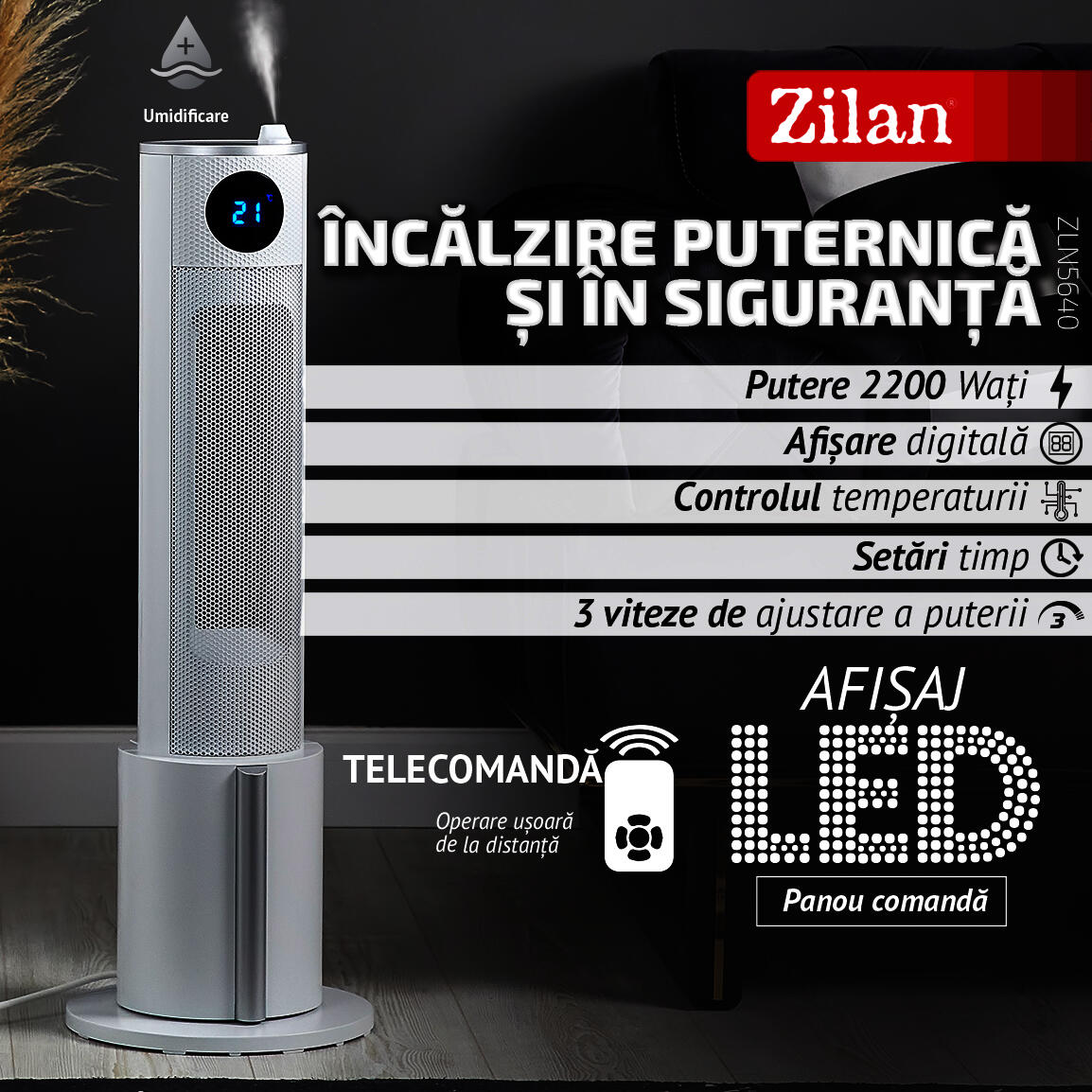 Aeroterma tip turn Zilan ZLN5640 Alba, putere 2200W, ecran LED, 3 trepte de viteza