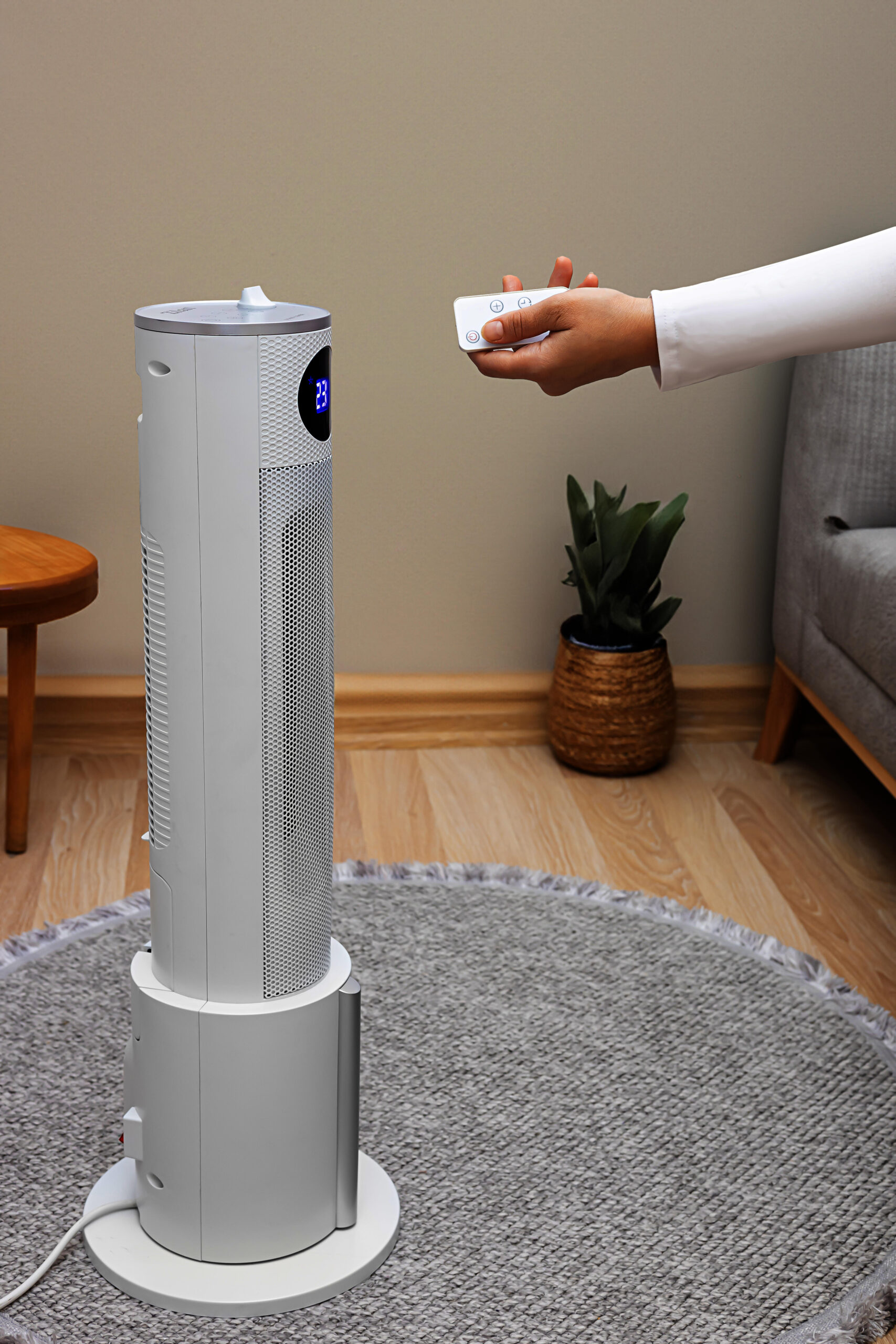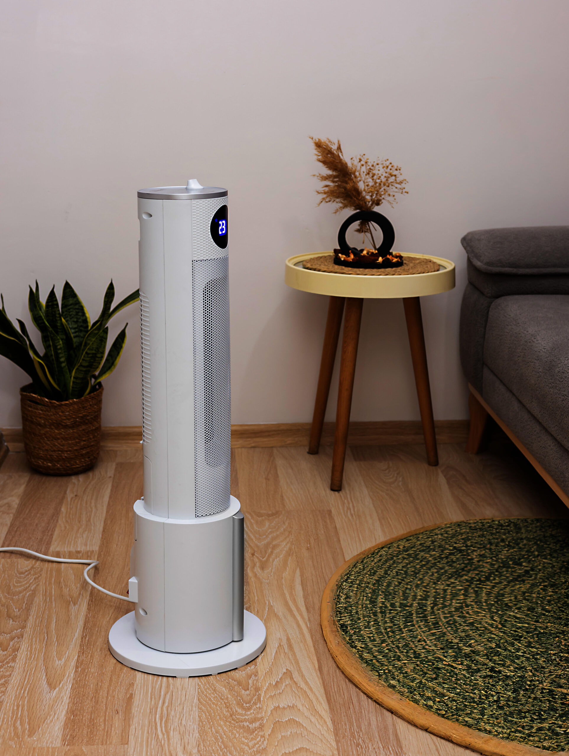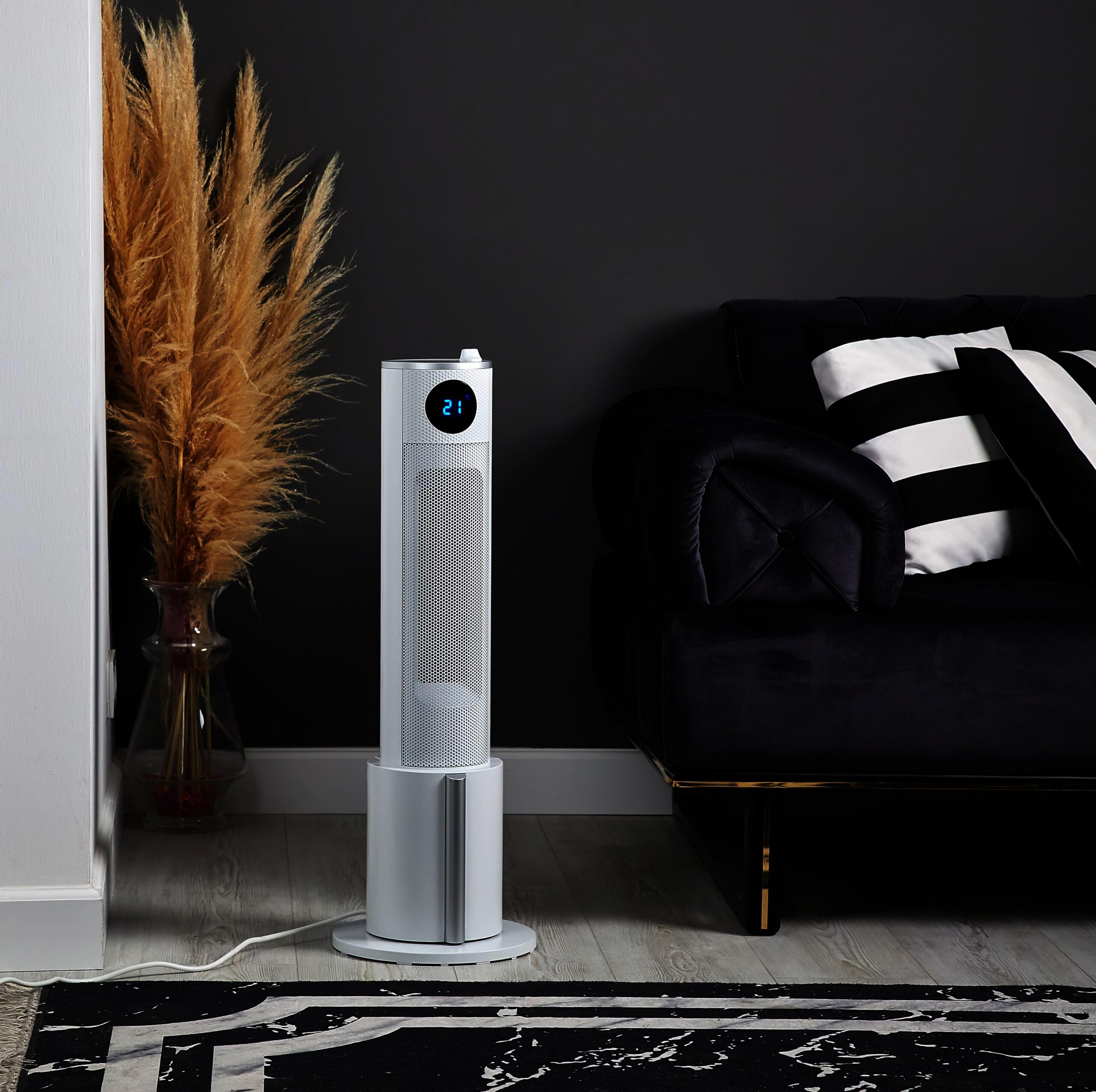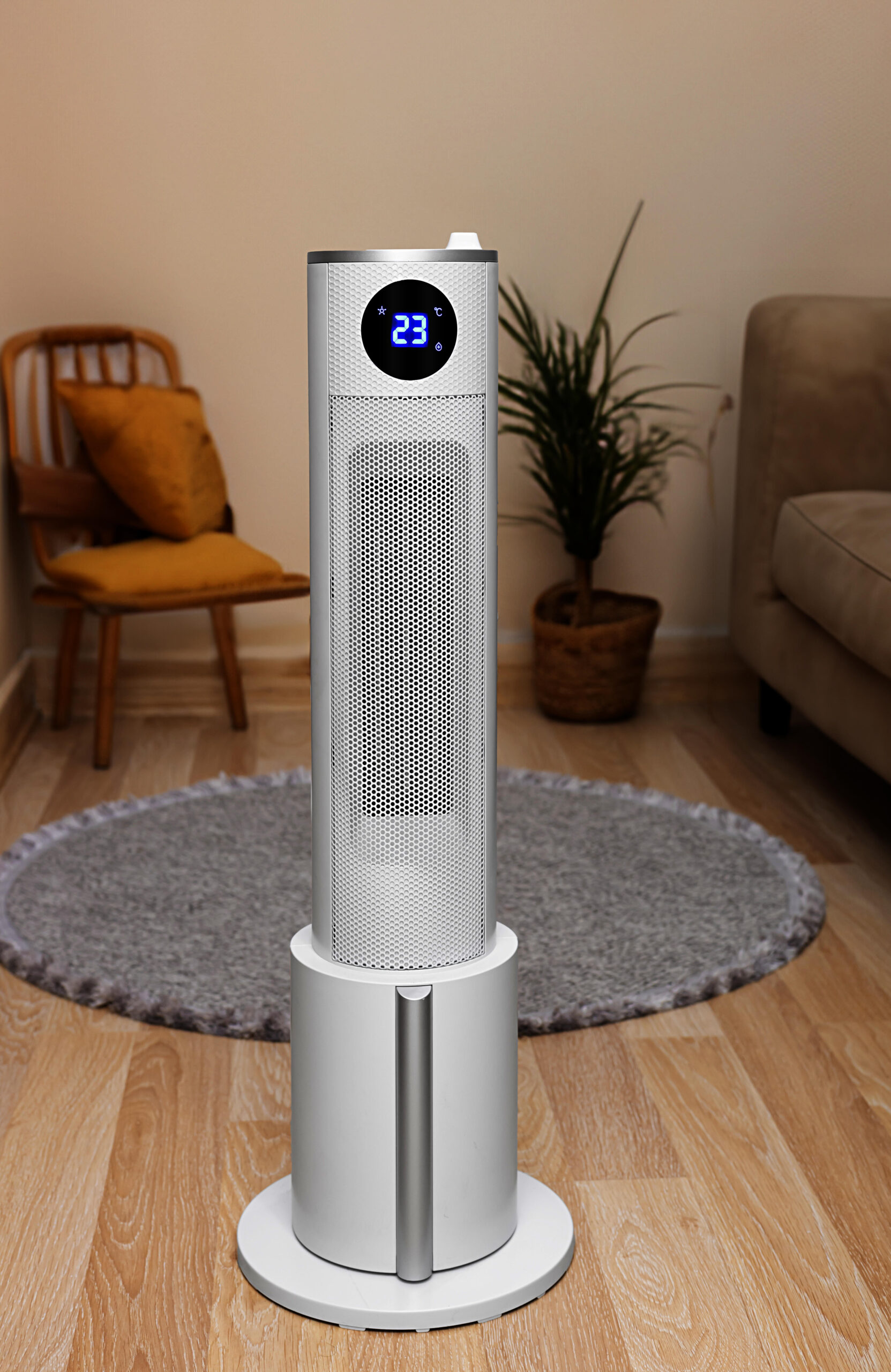 Caracteristici:Putere de 2200 WElement de incalzire PTC de inalta eficienta3 setari de functionare3 setari de temperaturaProtectie la supraincalzireUnghi larg de oscilatieTemperatura reglabila intre 10 si 35 CUtilizare tactila si cu telecomandaTemporizator de 12 oreIndicator LEDDimensiuni:Inaltime: 74 cmDiametru: 17 cm