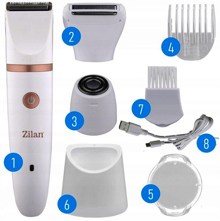Caracteristici generale:Utilizare umeda si uscata – Acest aparat de epilat este rezistent la apa prin sistemul de protectie IPX7Incarcare USB – Produsul vine la pachet cu un cablu special, FARA capatul de bagat in prizaAutonomie de 60 de minute – Cu o incarcare completa, aparatul poate fi folosit intr-un interval de 60 de minuteIncarcare de 90 de minute – Pentru o incarcare completa, sunt necesare doar 90de minute3 capete de utilizare – Aparatul de tuns Zilan ZLN8740 are in dotare 3 capete cu dimensiuni diferitePerie de curatat – In pachet este inclusa si o perie pentru curatarea lamelorSuport pentru aparat – Pachetul contine un suport pentru aparatul de tunsEpilator electric profesional, QUIRITIS, 3 in 1, incarcare USB, alb.Caracteristici:– cap de taiere precisa;– buton pornire/oprire;– indicator luminos;– cap de ras circular (pentru fata, brate, zona bikini si alte parti ale corpului);– capac de protectie pentru capul de ras circular;– capac de protectie pentru aparatul de ras pentru corp;– accesoriu pentru pieptene 3-6mm;– cablu USB;– perie de curatare;