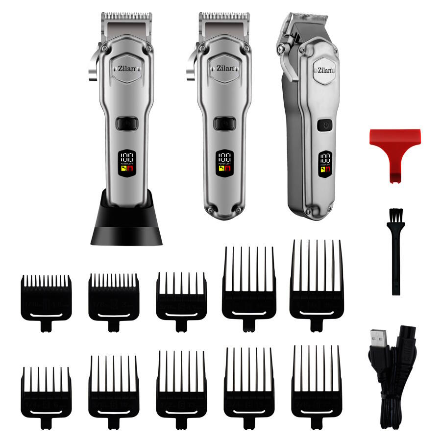 Caracteristici generale:Afisare LED – Aparatul afiseaza digital nivelul bateriei si momentul cand capatul este blocat pentru sigurantaUtilizare umeda si uscata – Acest aparat de tuns profesional este rezistent la apa prin sistemul de protectie IPX7Incarcare USB – Produsul vine la pachet cu un cablu special, FARA capatul de bagat in prizaAutonomie de 240 de minute – Cu o incarcare completa, aparatul poate fi folosit intr-un interval de 240 de minuteIncarcare de 180 de minute – Pentru o incarcare completa, sunt necesare doar180de minute10 capete de utilizare – Aparatul de tuns Zilan ZLN8696 are in dotare 10 capete cu dimensiuni diferitePerie de curatat – In pachet este inclusa si o perie pentru curatarea lamelorSuport pentru aparat – Pachetul contine incarcator tip suport pentru aparatul de tunsAparat de tuns electric 11 in 1, pentru barbati reincarcabil IPX7, LED, gri.Caracteristici:– protectie IPX7;– incarcare rapida;– corp frontal metalic;– capete lavabile;– utilizare cu fir sau fara fir;– ecran LED;– 10 marimi de ras: 1.5/3/4.5/6/10/13/16/19/22/25mm– uncarcare USB;– perie de curatat;