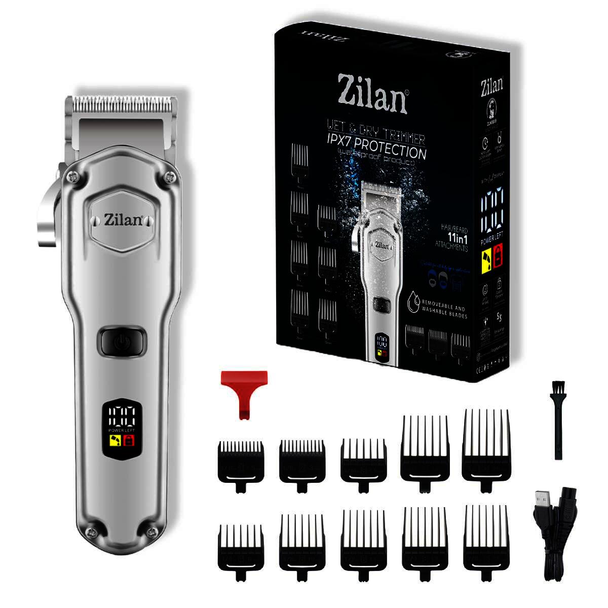 Aparat de tuns 11 in 1 Zilan ZLN8689, lame din otel inoxidabil, rezistenta la apa IPX7