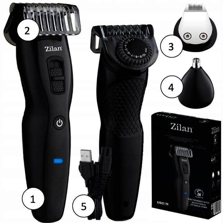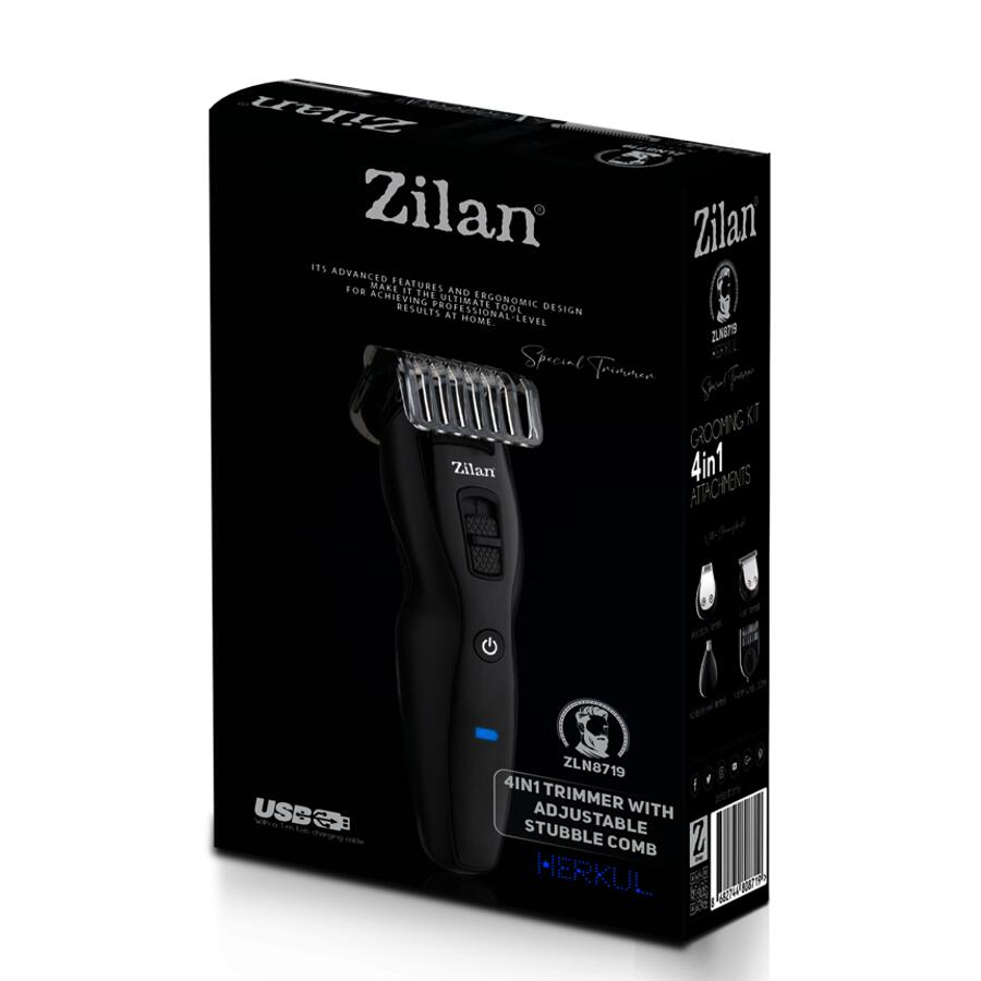 Caracteristici generale:Afisare LED – Aparatul afiseaza digital nivelul baterieiIncarcare USB – Produsul vine la pachet cu un cablu special, FARA capatul de bagat in prizaAutonomie de 60 de minute – Cu o incarcare completa, aparatul poate fi folosit intr-un interval de 60 de minuteIncarcare de 120 de minute – Pentru o incarcare completa, sunt necesare doar120de minute3 capete de utilizare – Aparatul de ras Zilan ZLN8719 are in dotare 3 capete diferite, unul dintre acestea fiind ajustabil intre 1 si 10 mmPerie de curatat – In pachet este inclusa si o perie pentru curatarea lamelorAparat de tuns 4 in 1, HERKUL, incarcare USB, 4 capete, 500mAH negru.Caracteristici:– 3 capete;– cap pentru tuns barba, taiere 0.5mm;– cap pentru tuns par nas si urechi;– pieptene pentru barba 1-10mm;– buton pornire/oprire;– ulei si perie de curatare;