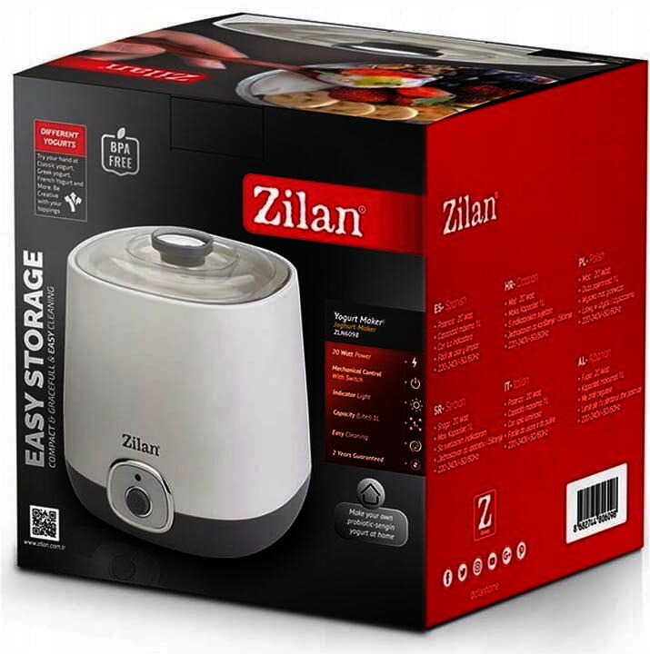 Aparat pentru facut iaurt, Zilan ZLN6098 Alb, indicator luminos, capacitate 1L