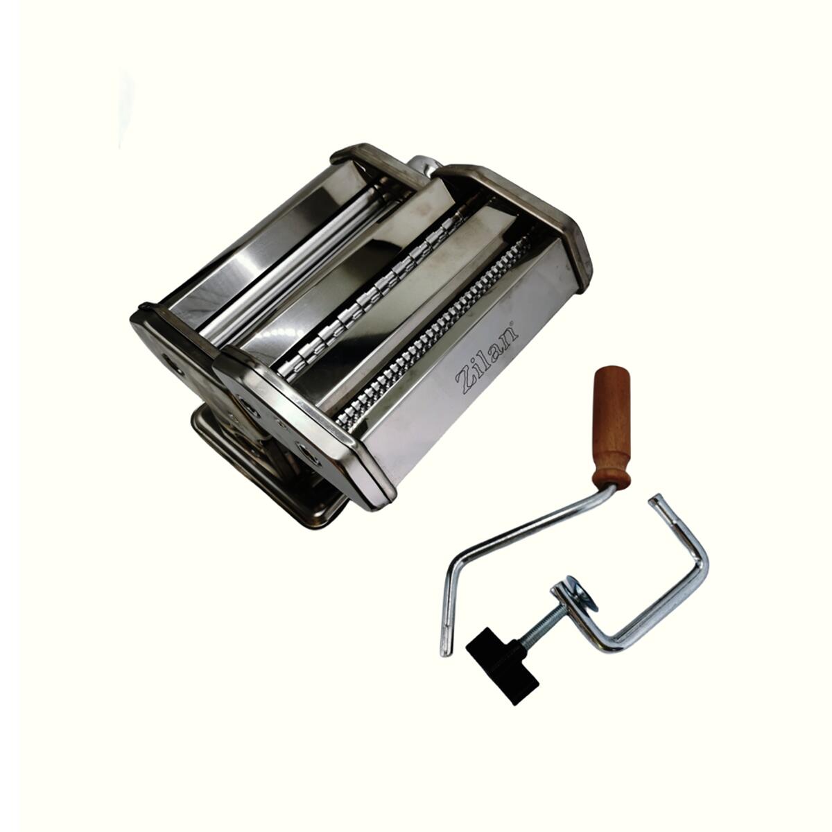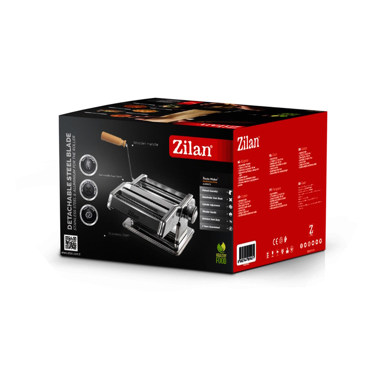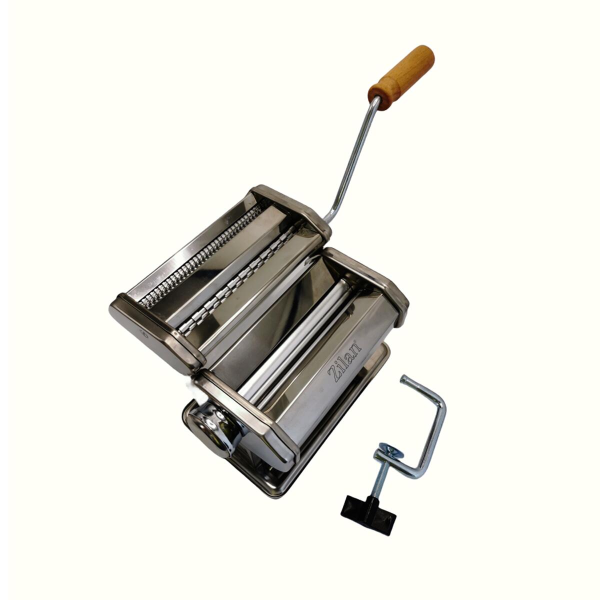 Aparat pentru facut paste Zilan ZLN9471, forma detasabila, corp din inoxAparat de facut pasteDe multe ori pastele fainoase din comert contin conservanti, nu se prepara conform asteptarilor, se lipesc sau nu au gust, de aceea va sfatuim sa le preparati in casa deoarece acum exista masina de facut paste. Masina de paste, conceputa din inox poate fi un ajutor minunat in oricare gospodarie, utilizarea sa fiind foarte simpla si rapida in prepararea taiteilor de casa. Masina paste este o masina performanta care iti intinde aluatul si taie taiteii la doua grosimi diferite, un accesoriu perfect de bucatarie pentru gospodine. Aparatul pentru taitei de la dispune de 2 functii: intinde foaia de aluat si taie taiteii la dimensiunea setata. Pentru ca poate fi prinsa de masa, este foarte sigura in utilizare Simplu de folosit, eficienta si sanatoasa, aceasta masina de facut taitei ofera cea mai inalta calitate si de asemenea este usor de intretinut. Pentru a folosi aceasta masina pur si simplu puneti aluatul de taitei intre lamele masinii, apoi manuiti manerul masinii si asteptati ca taiteii sa iasa pe partea cealalta.Caracteristici:Marime ideala si design potrivitFoarte simplu de utilizat si curatatMaterial de calitateLatimea aluatului 150 mm.Modul pentru fixare pe masa pentru siguranta.Manualul de utilizareDimensiuni : 21 x 19.8 x 13 cm.Greutate: 2.7 Kg