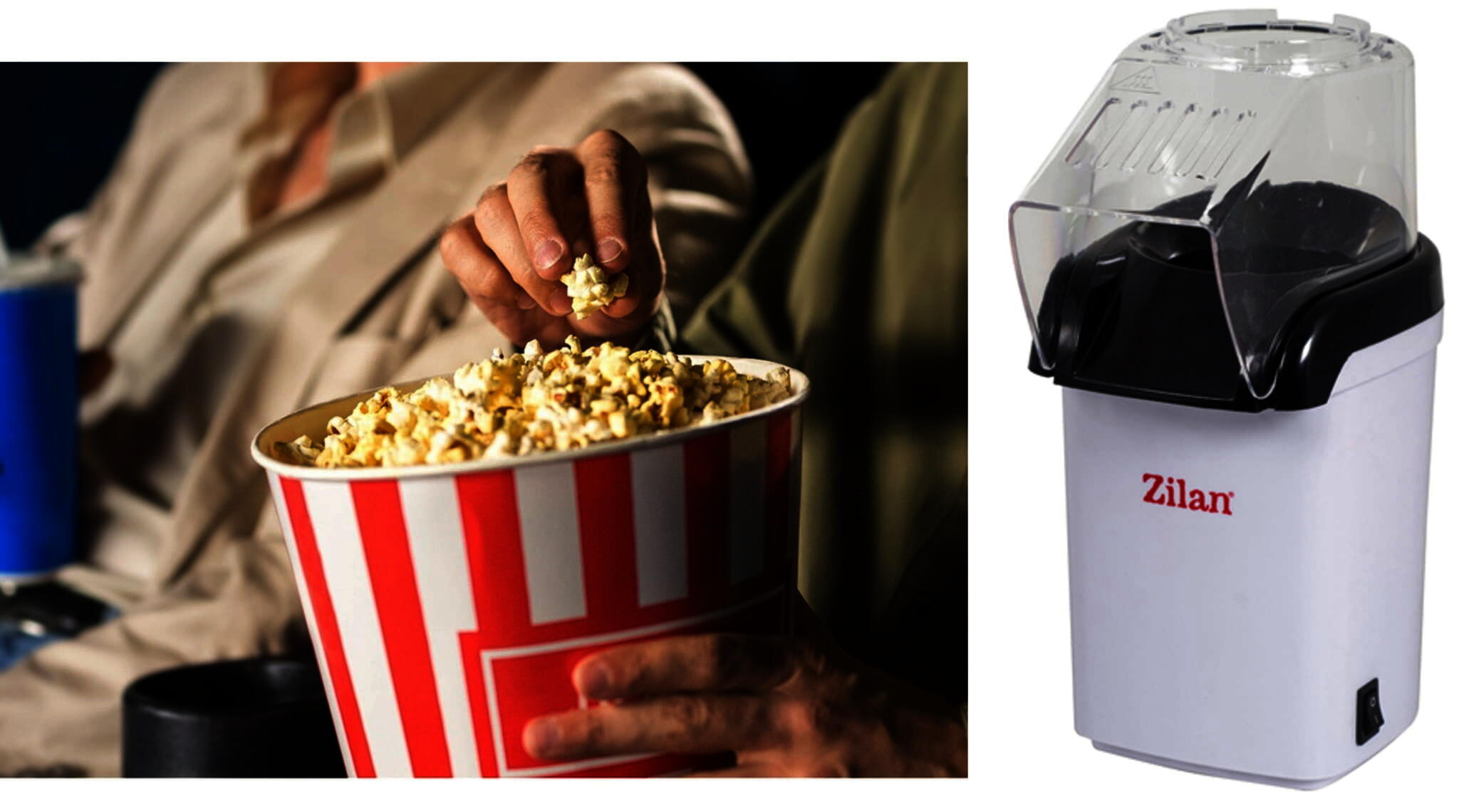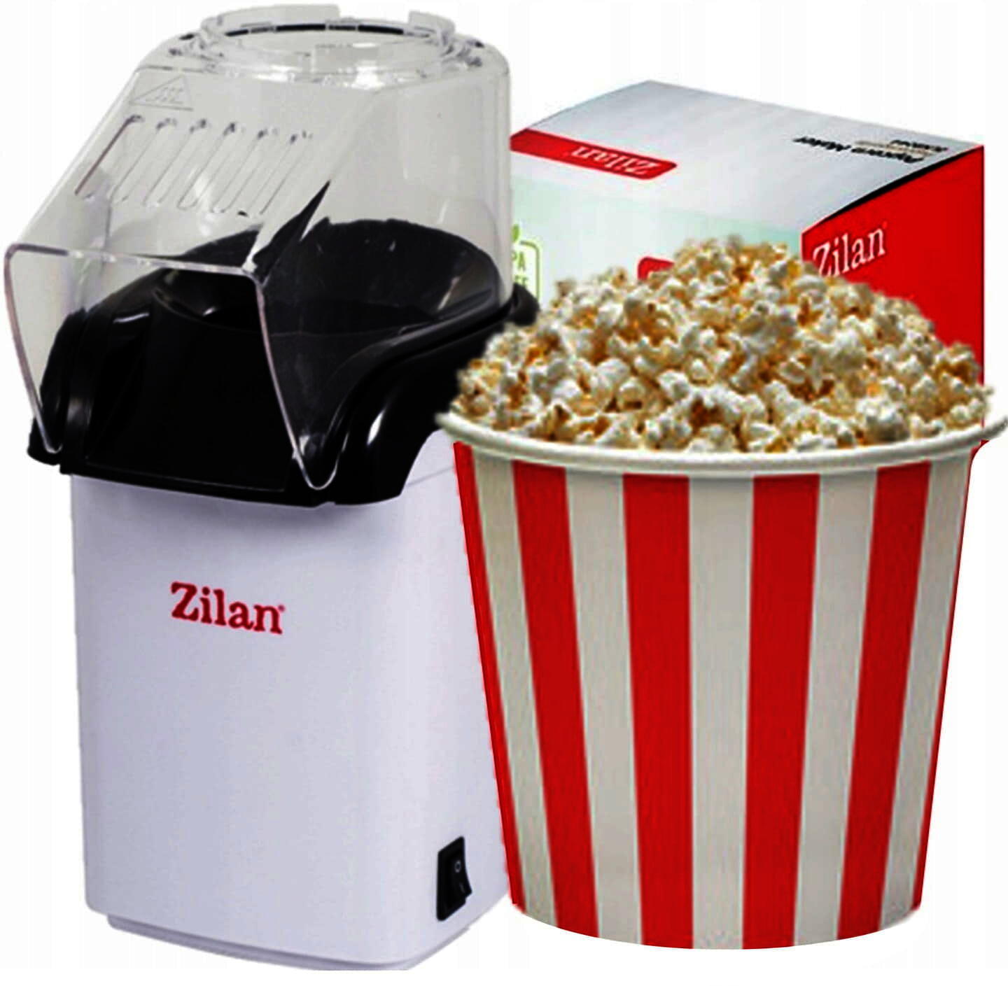 Aparat Pentru Popcorn Zilan ZLN-8044,Alb Putere 1200W, sistem cu jet de aer cald,