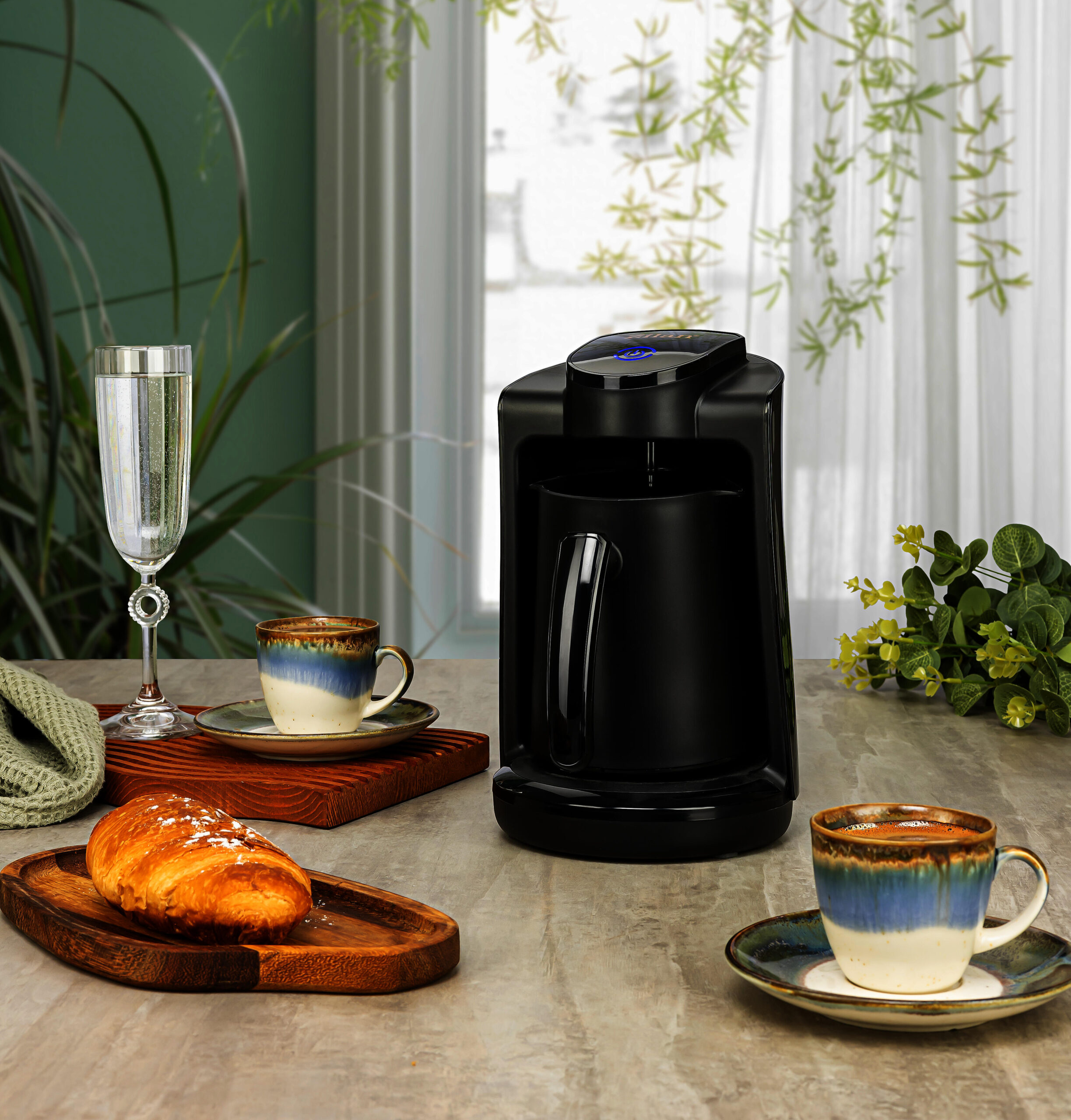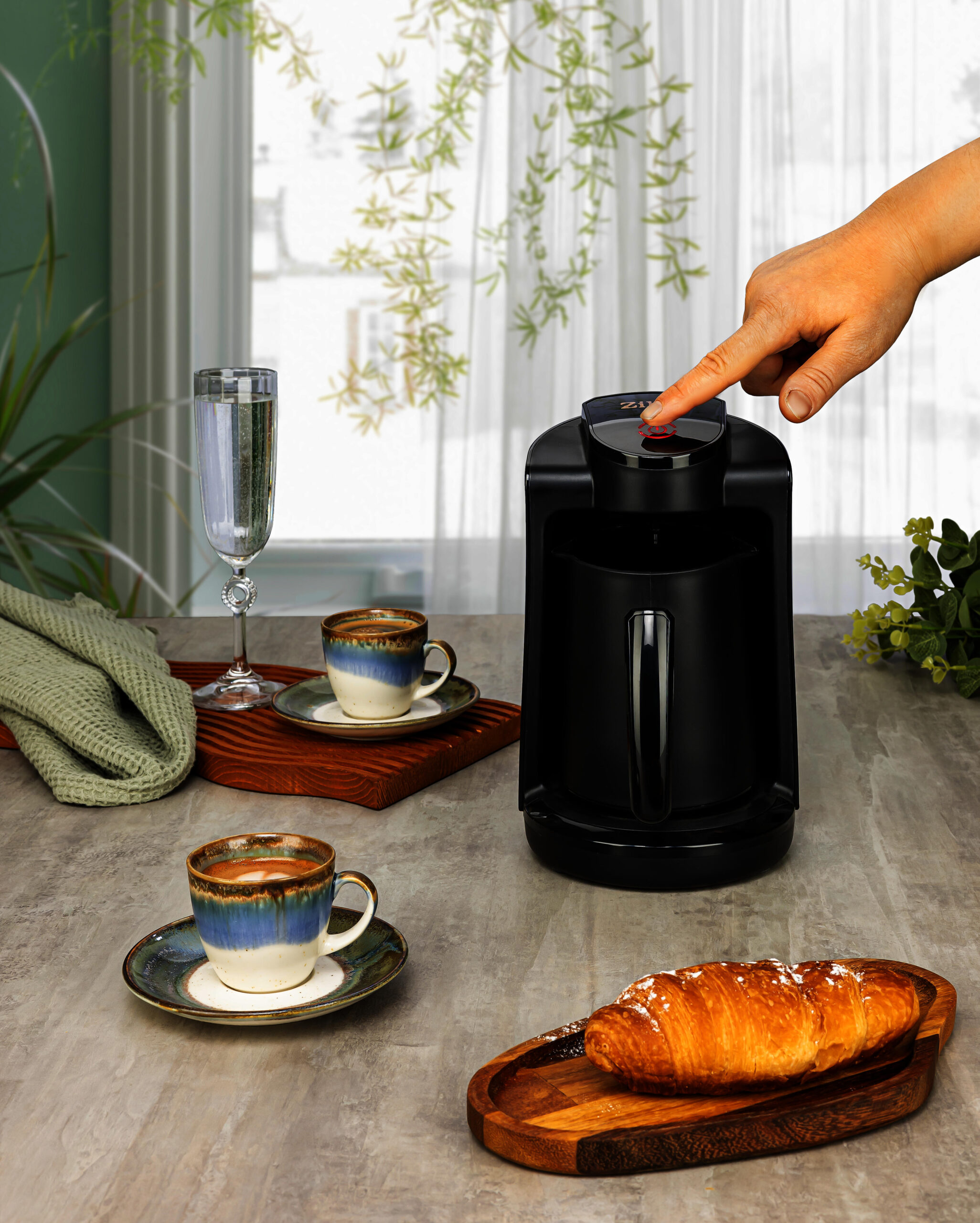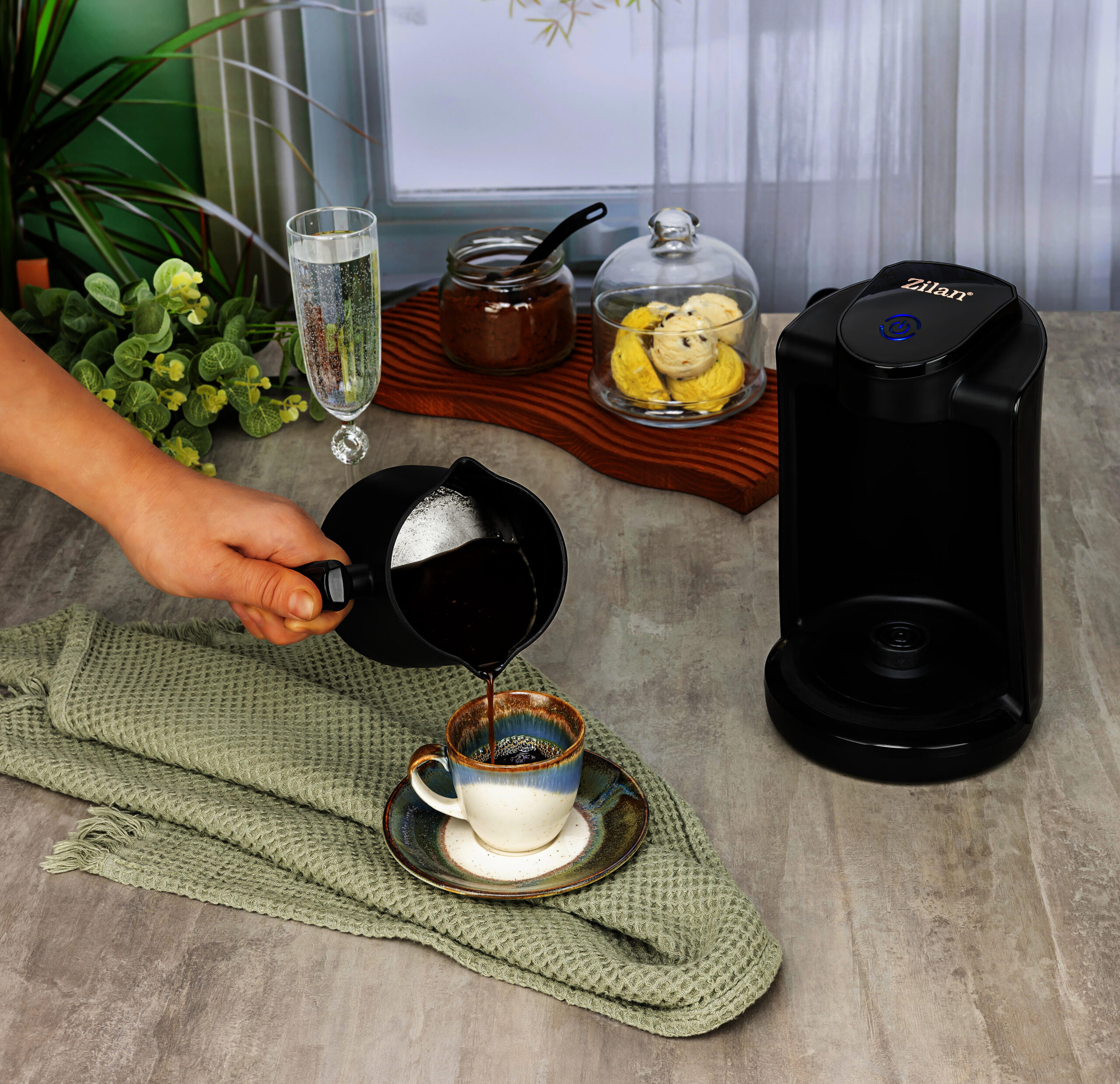 DescriereAparat de facut cafea turceasca si greceasca Zilan ZLN1284Cafetiera turceasca Zilan ZLN1284 este alegera perfecta pentru o experienta unica a cafelei datorita designului, a functiilor inteligente si a capacitatii de pana la 4 cesti.CARACTERISTICI GENERALETipAutomatTip incastrareStandardUtilizareRezidentialTip alimentareCafea macinataTip bauturaCafeaNumar produse preparate4Material carcasaPlasticAccesorii incluse1 x Lingura de masuratCuloareNegruSPECIFICATII TEHNICEPutere400 WTrepte putere1Presiune pompa0 barCapacitate rezervor apa250 mlDIMENSIUNILatime14 cmAdancime13 cmInaltime23 cmGreutate0.53 KgLungime cablu80 cmInaltime maxima ceasca13 cm