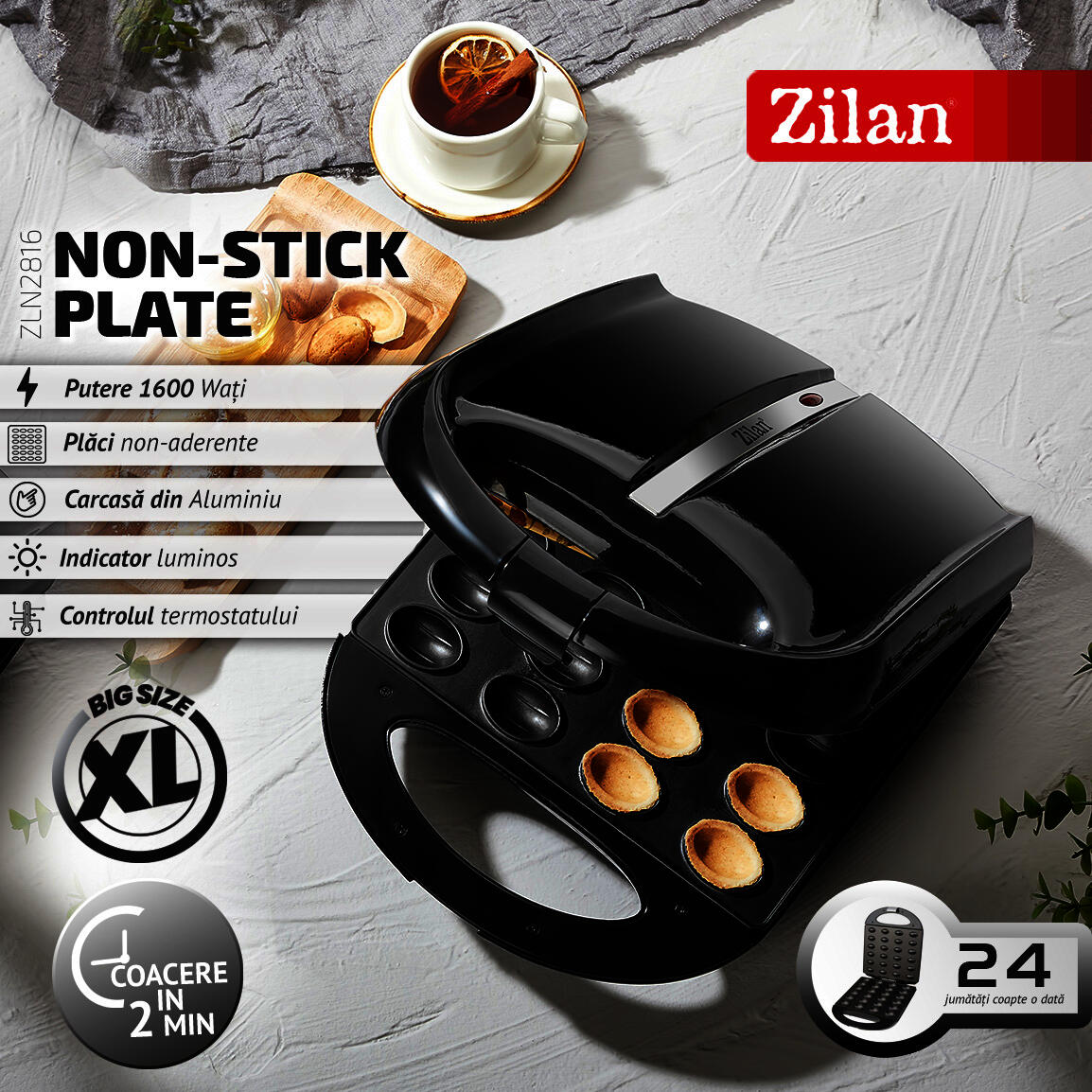 Aparat pentru preparat nuci Zilan ZLN2816 Negru, 24 jumatati sau 12 nuci intregi, 1600W, indicator luminos, Placi Neaderente