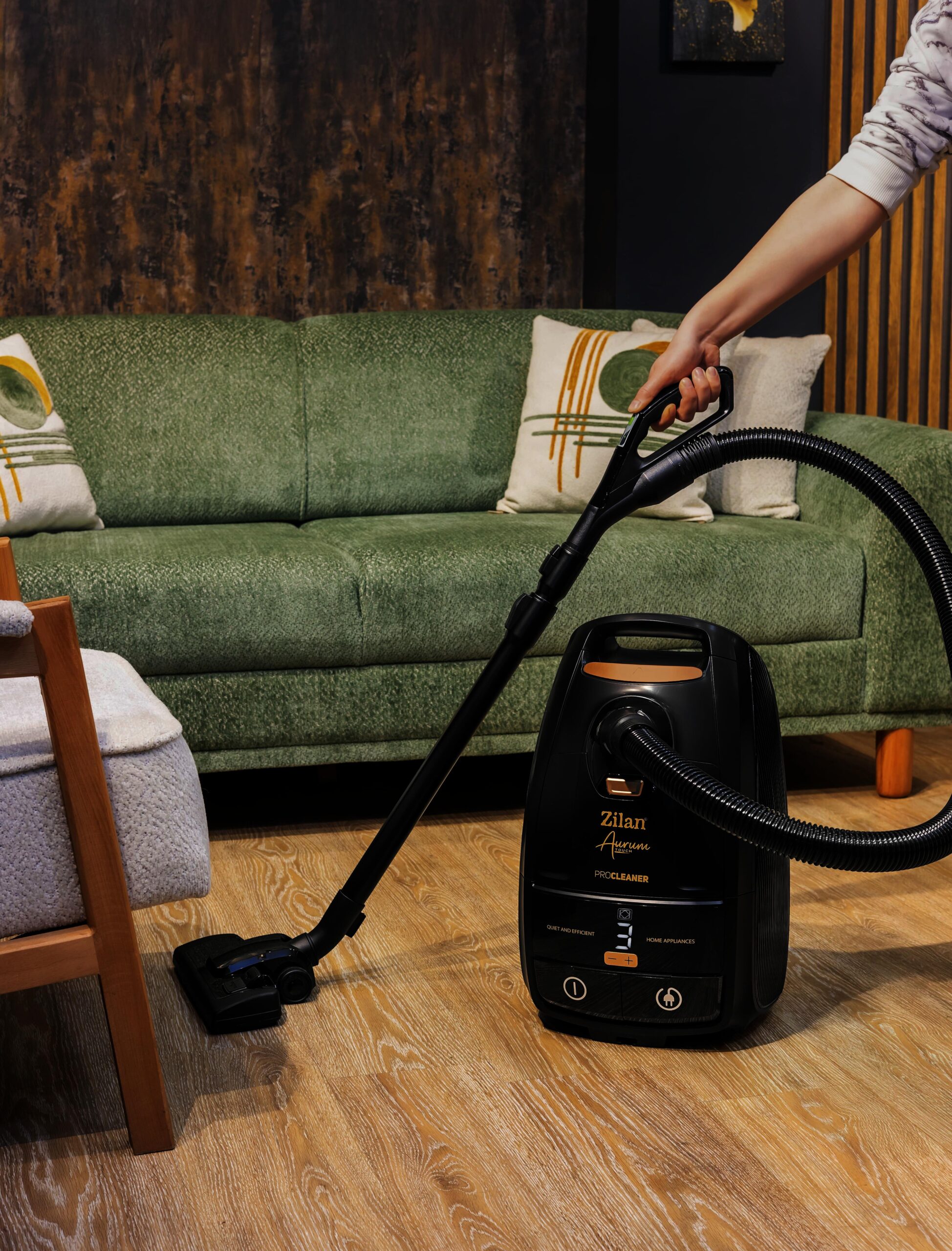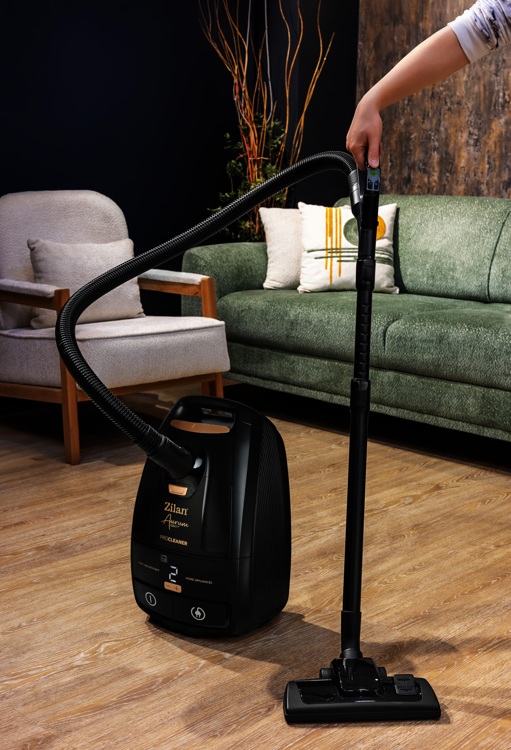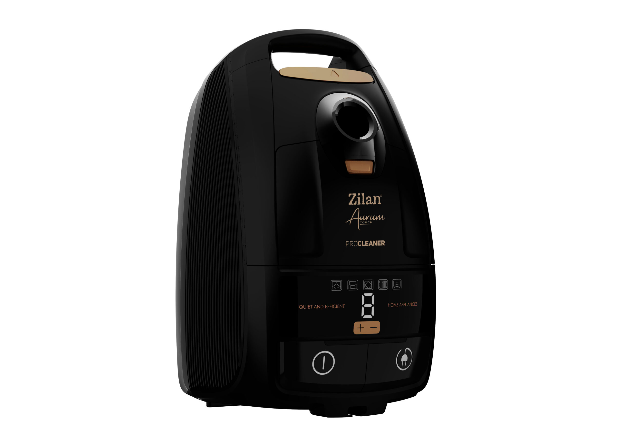 Aspiratorul cu sac Zilan ZLN4500 Aurum are o putere totala de 2400W si o putere aspirare de ≥330W si presiune a aerului de≥21kPa. Motorul aspiratorului este construit din cupru. Praful si mizeria se stocheaza in sacul aspiratorului, acesta avand o capacitate de 5L. Aspiratorul are un afisaj digital. Prin intermediul telecomenzii incluse in pachet se poate controla viteza aspiratorului de la distanta. Sistemul de filtrare este HEPA. Aspiratorul are protectie termostatica pentru o durata de viata mai lunga a aspiratorului.Furtunul este pivotant la 360° si tubul este extensibil, de asemenea rotile se rotesc la 360°. Lungimea cablului este de 7m si aspiratorul dispune de functia de strangere automata a cablului. Aspiratorul dispune de un comutator la pedala pentru pornire si oprire a aspiratorului.Datorita tehnologiei folosite aspiratorul este unul silentios producand un nivel de zgomot de 79dB.In pachetul produsului se regaseste o telecomanda, perie metalica cu 2 roti mici ( potrivita pentru covoare si podele ). Aspiratorul este conceput cu manere practice pentru transport.SpecificatiiPutere totala2400WPutere aspirare≥330WPresiune a aerului≥21kPaCapacitate a sacului5LSistem de filtrareFiltru HEPANivel de zgomot79dB
