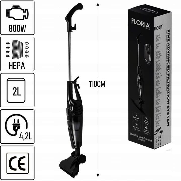 Aspirator Vertical 2 in 1 cu filtru HEPA fara sacAcesta dispune de o teava de metal, filtru special HEPA ce se poate curata cu o simpla spalare, cablu de alimentare de 4.2 metri.Functioneaza cu sursa de alimentare 220-240V.Alte caracteristici:Putere: 800WMofa VDEFiltru HEPADepozitare in pozitie verticala si orizontalaCarlig pentru infasurare cabluCablu de 4.2 mInaltime: 111cm