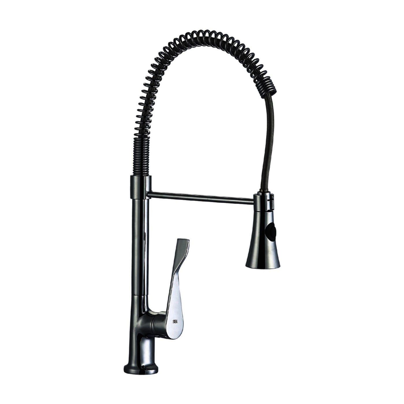 Baterie de bucatarie Z-Inox ZLN8153 cu gat flexibil de 45 cm, corp din alama, suprafata cromata, doua moduri de stropire