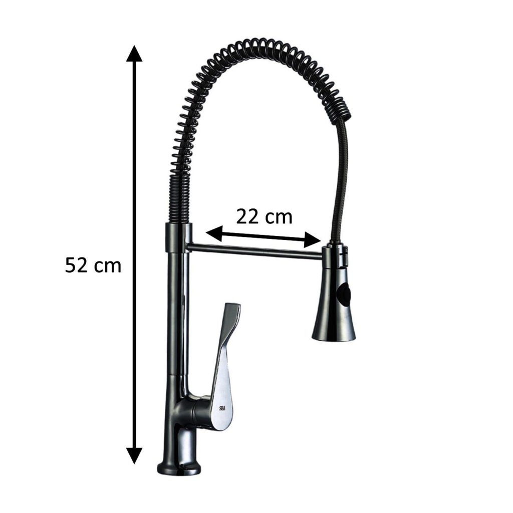 Baterie de bucatarie Z-Inox ZLN8153 cu gat flexibil de 45 cm, corp din alama, suprafata cromata, doua moduri de stropire