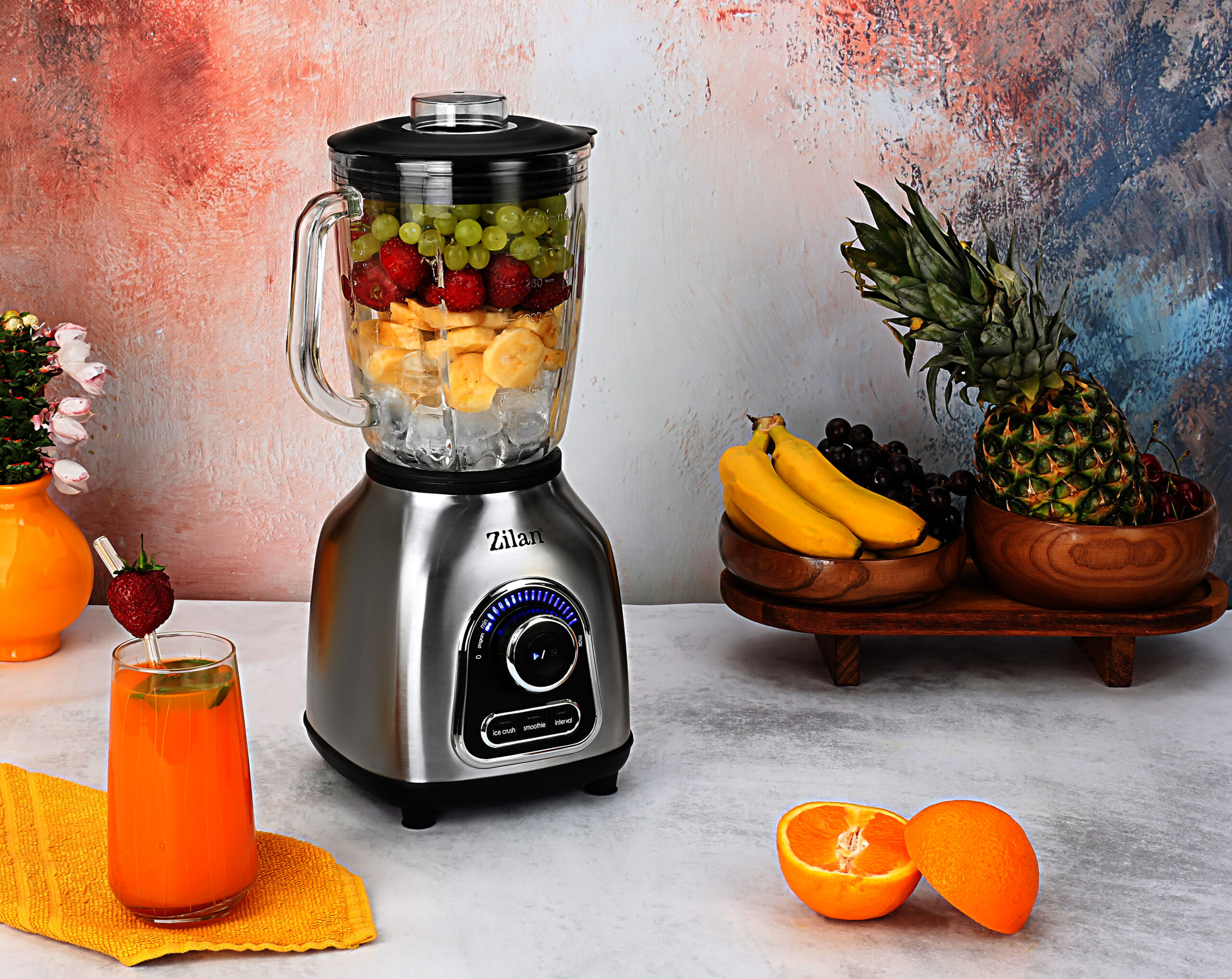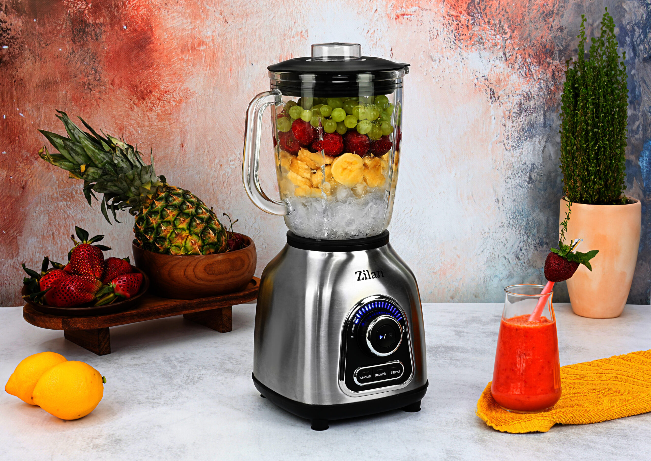 DescriereAcest blender din inox este prevazut cu 3 moduri diferite din functionare. Poate sparge gheata, amesteca si interval.Vasul este din sticla iar baza este formata din inox.Lama din otel indocidabil usor detasabilaFunctie excelenta pentru zdrobire a ghetiiVas cu o capacitate de pana la 1.75LO portiune din capac este detasabila pentru adaugarea mai usoara a ingredientelorControl reglabil al vitezei