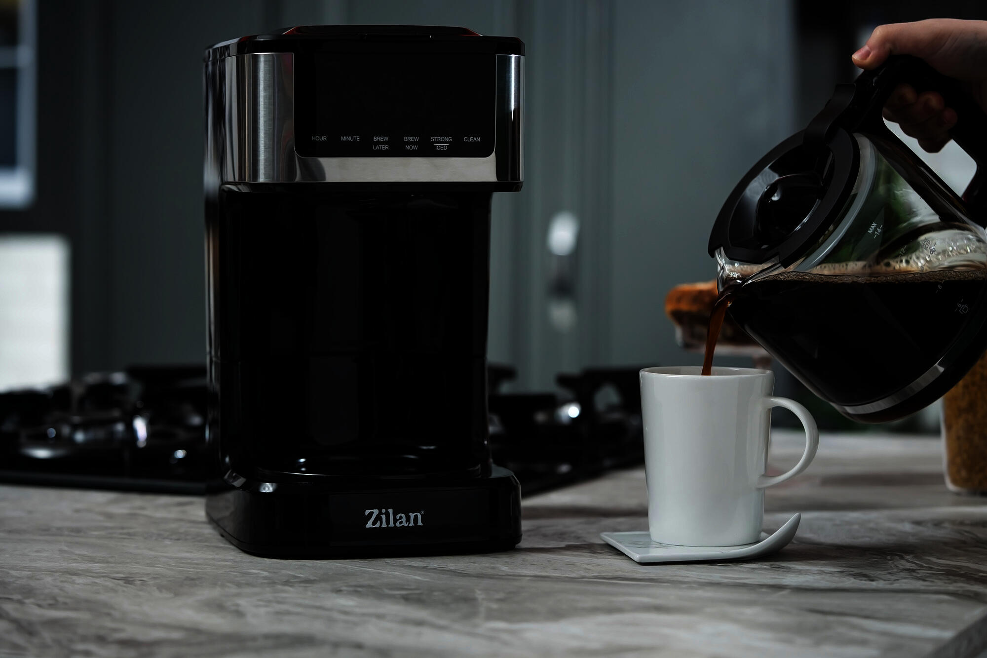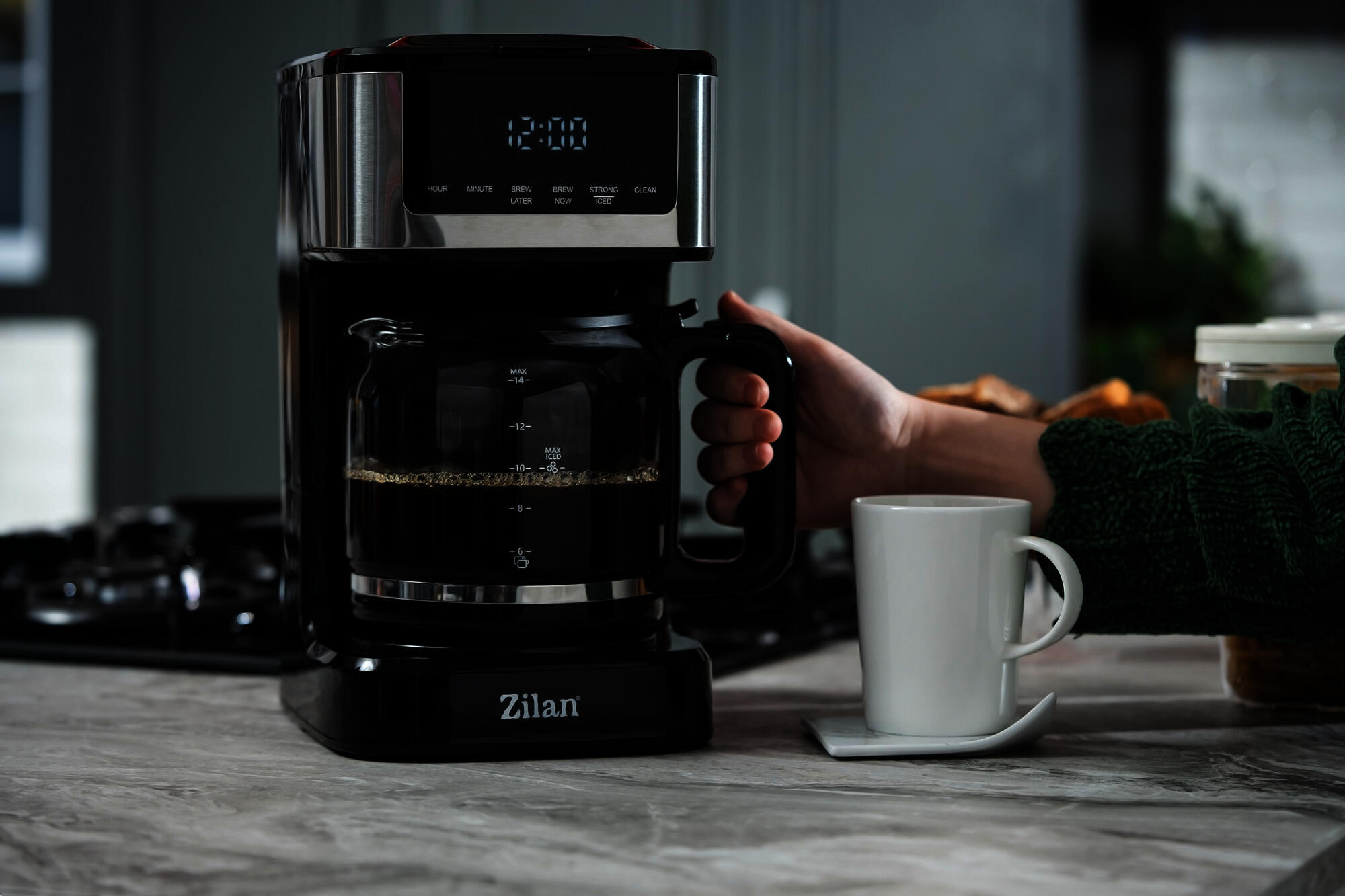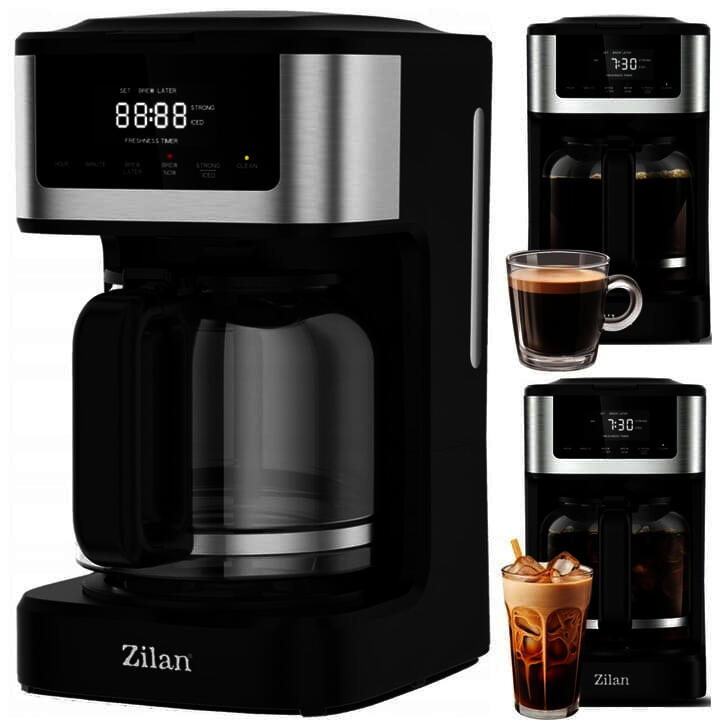 Cafetiera digitala Zilan ZLN9266, functie de preparare la o ora uterioara, auto curatareCaracteristici:Capacitate bol 1.8 litriiPutere 900WFunctie de programare a prepararii la o ora ulterioaraCuratare automataFunctie de mentinere a temperaturiiBolul este compatibil cu masinile de spalat vaseDimensiuni: 30 x 17 x 19 cmLingurita pentru masuratAccesoriu din silicon