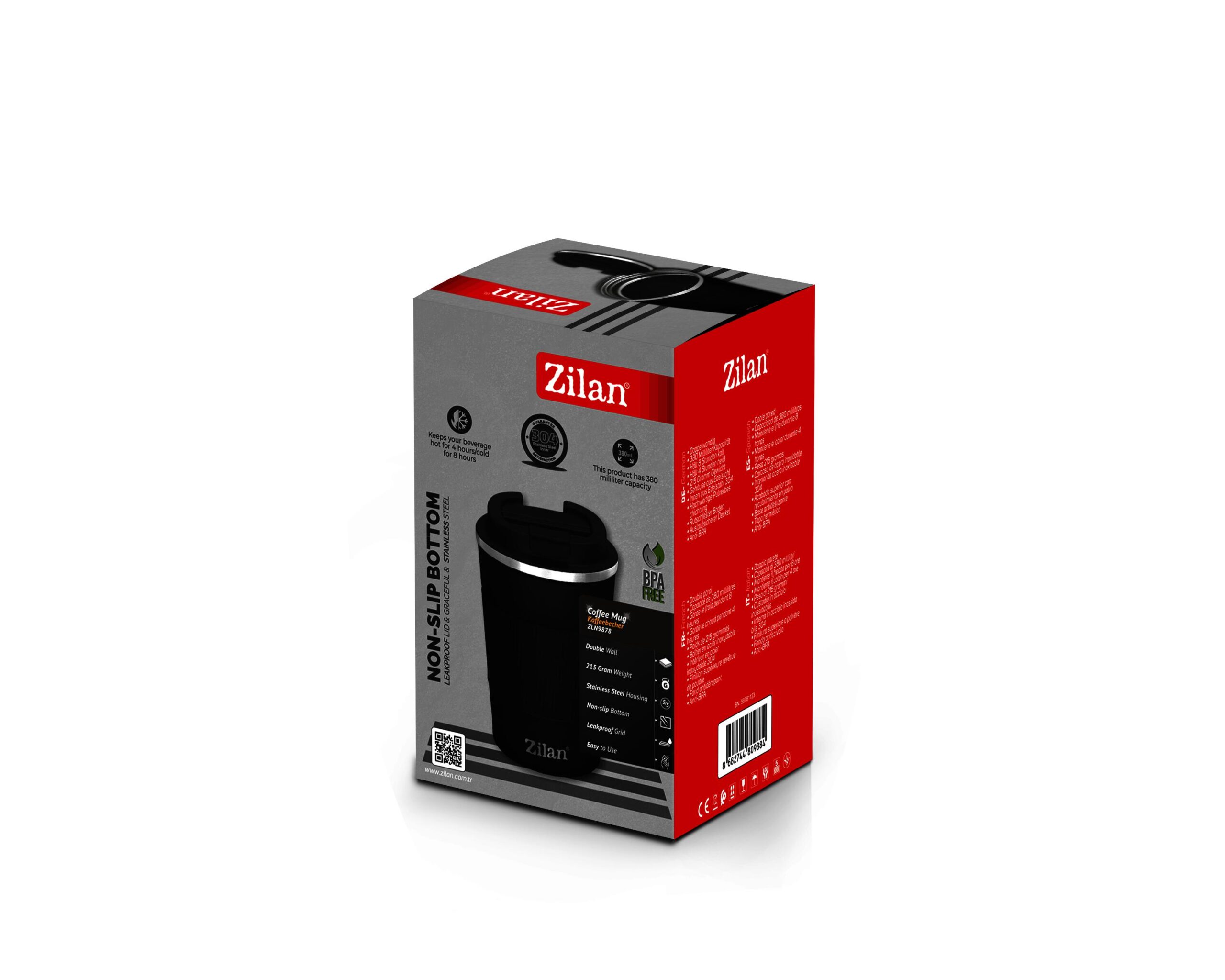 Cana de cafea Zilan ZLN9878 termos, capacitate 380ml, interior din inox, pereti dublii, negru