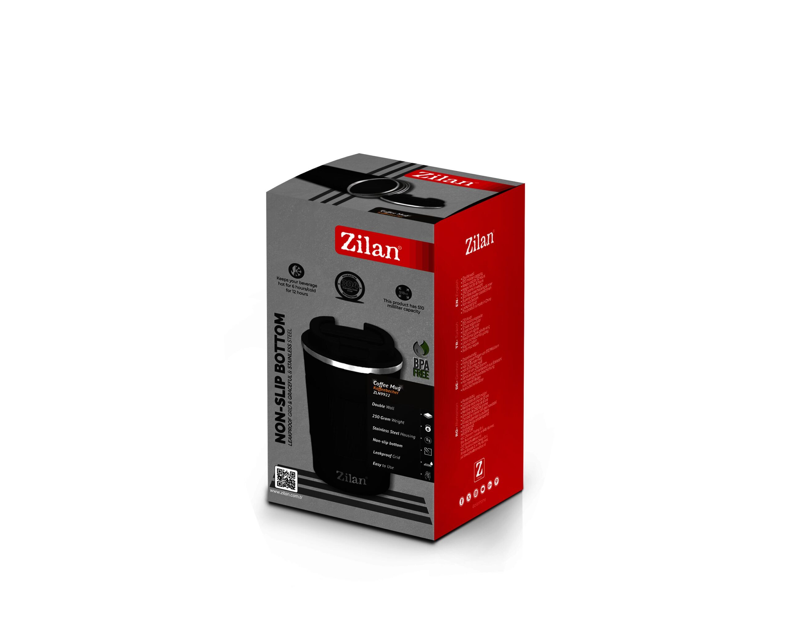 Cana de cafea Floria ZLN9922 tip termos este de culoarea neagra si are o capacitate de 510ml. Termosul beneficiaza de pereti dublii prin intermediul care reuseste sa mentina temperatura rece pana la 12 ore, de asemenea mentine temperatura calda pana la 6 ore. Termosul este usor de spalat, are un capac etans si partea de jos a produsului este antiderapanta. Carcasa si interiorul este din otel inoxidabil.Dimensiune:Inaltime17.5 cmCapacitate510ml