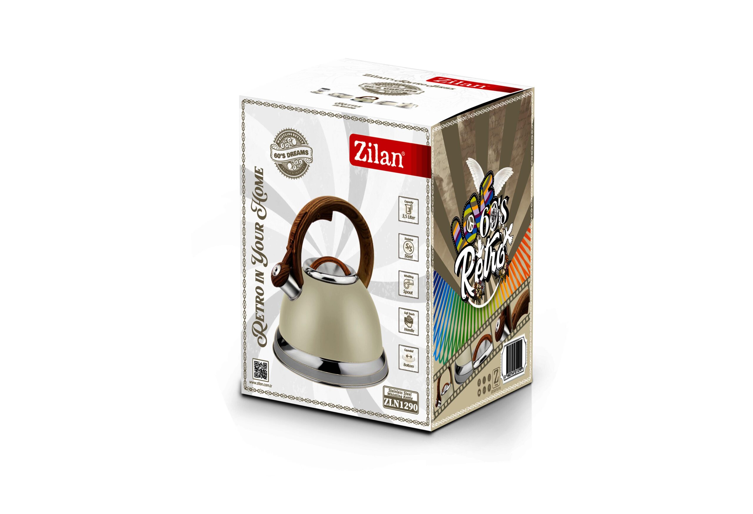 Ceainic Retro din inox cu fluier Zilan ZLN1290, Culoare crem, Compatibil gaz, electric & inductie, Capacitate 3.5L