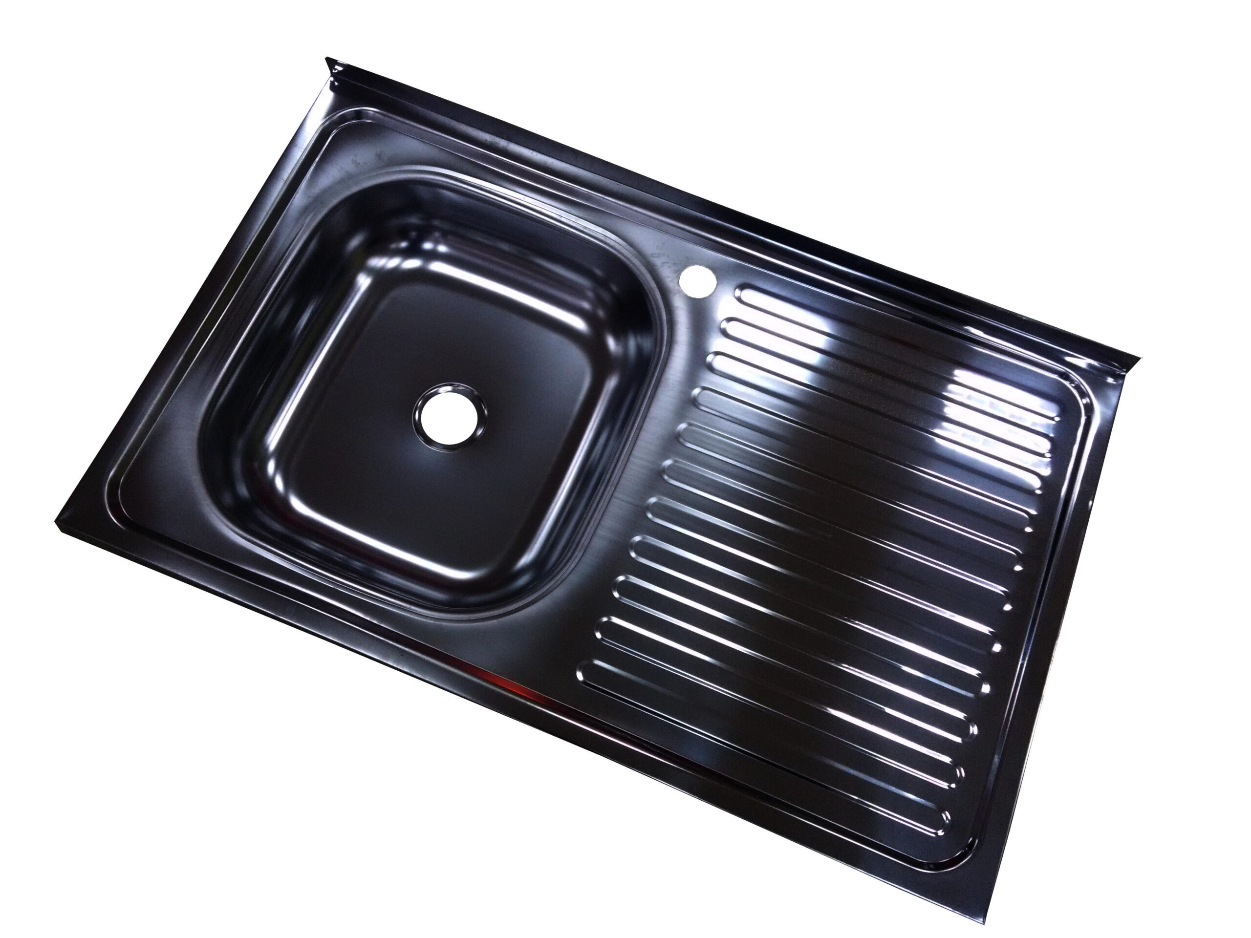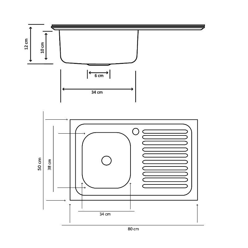 Chiuveta inox pentru masca 0,4 mm. Tip finisaj : satin (Lucios). Disponibila cu cuva pe stanga. Este prevazuta cu gaura pentru baterie (3,5 cm.) si guler la perete. Specificatii: – Dimensiune : 50 x 80 cm.; – Adancime : 9 cm.; – Grosime : 0,4 mmCARACTERISTICI GENERALETip produsChiuvetaTipCu picuratorPozitie montareStangaTip montareIncastratTip aerisireFara preaplinUtilizareInteriorFormaDreptunghiNumar cuve1MaterialInoxFinisajLuciosContinut pachet1 Chiuveta + sifonCuloareInoxDIMENSIUNILungime800 mmLatime500 mmAdancime cuva90 mmDimensiune cuva (mm)340 x 380Diametru scurgere57 mmDimensiuni spatiu montare (mm)500 x 800Greutate2 Kg