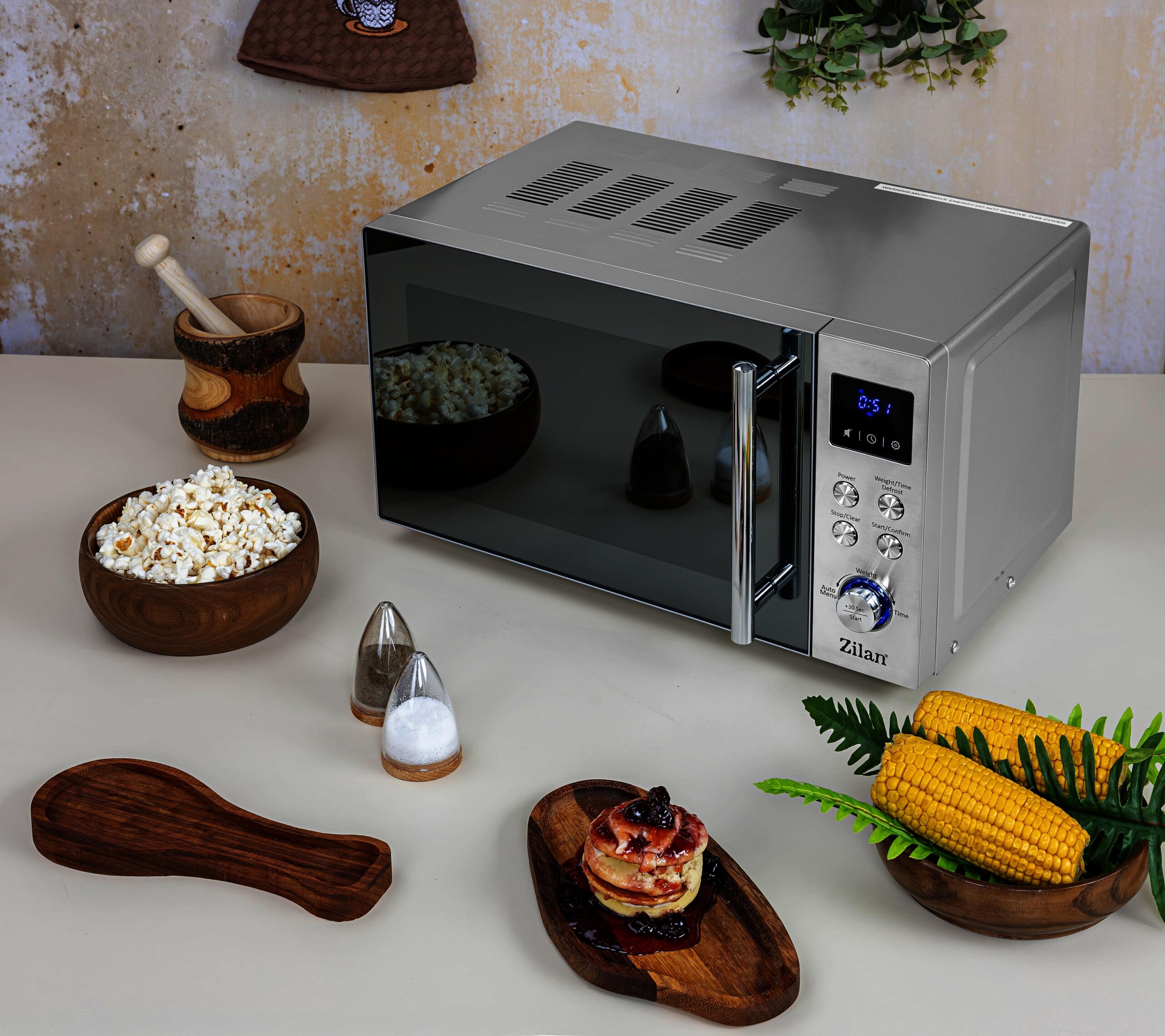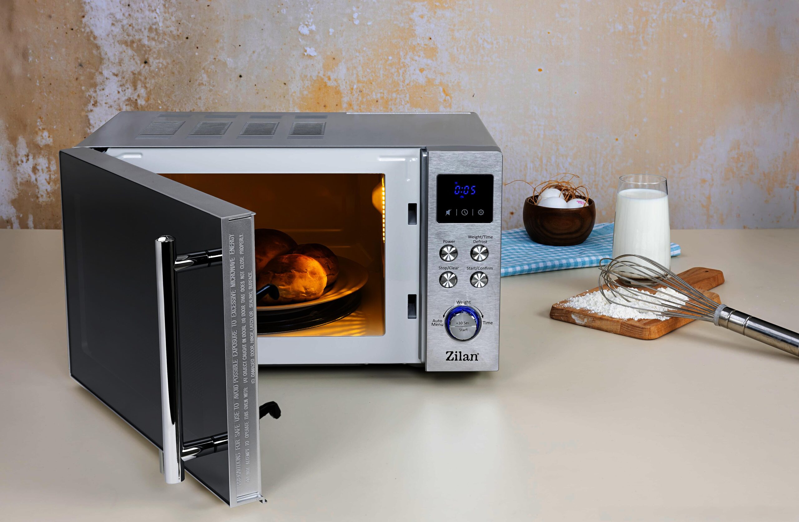Cuptor cu microunde digital Zilan ZLN1238, Putere 700W, Capacitate 20L, Functie de dezghetare, Panou din inox, Afisaj digitalDezghetare rapidaFunctia Defrost dezgheata alimentele rapid si uniform.Acesta dispune defunctie de decongelare in functie de timp si greutate.Putere si capacitateCuptorul cu microunde digitalZilan ZLN1238dispune de o capacitate de20Lsi o putere de700W. Cuptorul cu microunde dispune de6 niveluri diferite de putere.Functii si detaliiCuptorul cu microunde dispune de8 programe de gatit automate. De asemenea acesta beneficiaza deafisaj LED,semnal de sfarsit de gatit,gatit expressi optiune defunctionare silentioasa.Datorita tehnologiilor folosite cuptorul dispune detemporizator digitalcare se poate setapana la95 de minute. Pentru o utilizare cat mai usoara a cuptorului acesta beneficiaza deiluminare interioara. Farfuria din interior are undiametru de245mm.Utilizarea in sigurantaPentru o siguranta sporita cuptorul cu microundeZilan ZLN1238 beneficiaza de blocare de siguranta pentru copii.Caracteristici generaleTip incastrareStandardUtilizareRezidentialModalitati gatireMicroundePrograme predefiniteDezghetareTip panou de comandaDigitalDeschidere usaDreaptaCapacitate20 lFunctiiTemporizator,