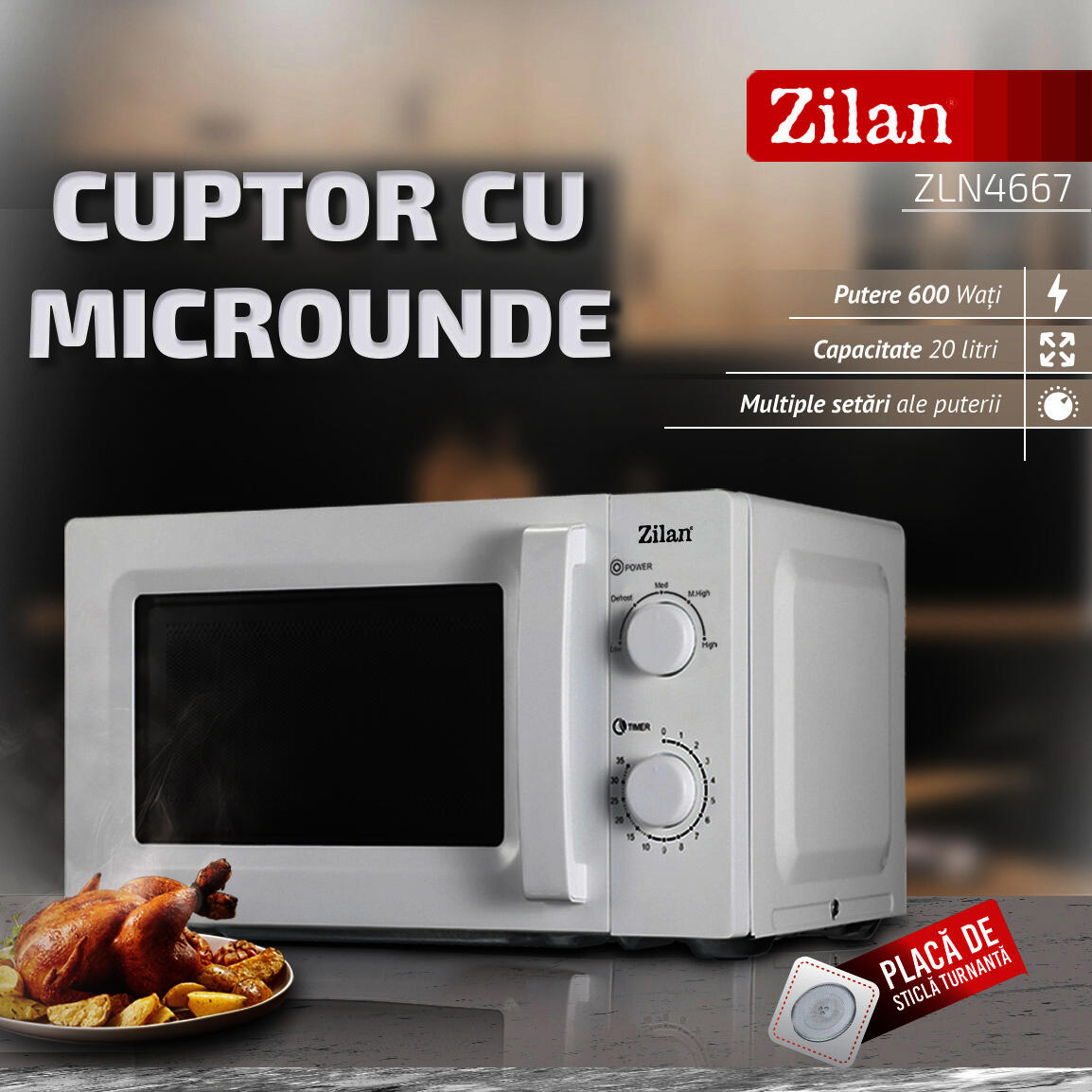 Cuptor cu microunde Zilan ZLN4667 Alb, putere 600 W, 20L, Timer