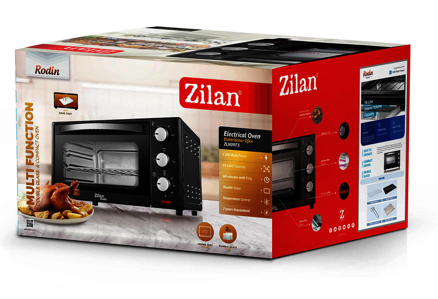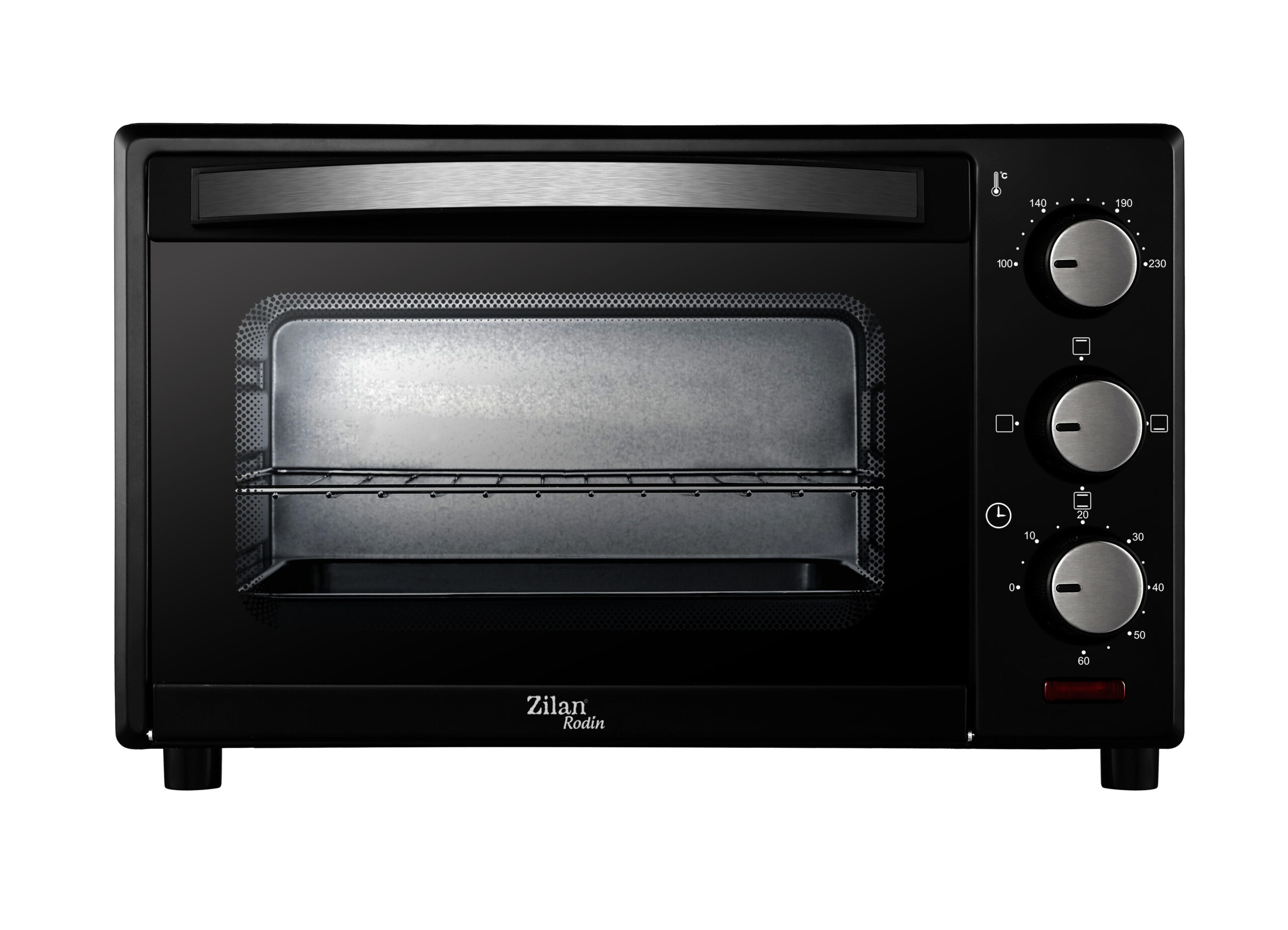 DescriereCuptor electricZilan ZLN-0973 RodinTemperatura poate fi reglata manual. Aceasta poate fii setata intre 100 si 230 de grade.Reteta localaSatisfaceti-va pofta de preparate gustoase, traditionale, folosind o gama larga de retete locale pre-programate. Acum, puteti crea oricare dintre preparate prin simpla rotire a unui buton, ceea ce va va ajuta sa economisiti timpul necesar pregatirii mesei.Panou de comanda mecanicPanoul de comanda mecanic. Acesta iti permite sa selectezi simplu si usortimpul si nivelul de putere dorit.Timer programabil si timp maxim de gatire: 60 minTimerul care poate fi programat cu oprire automata iti va permite sa setezi un timp maxim de gatire de panala 60 de minute.DIMENSIUNI:EXTERIOR (L/H/D): 41CM X 25CM X 30.5CMINTERIOR: (L/H/D): 28CM X 26CM X 20CM