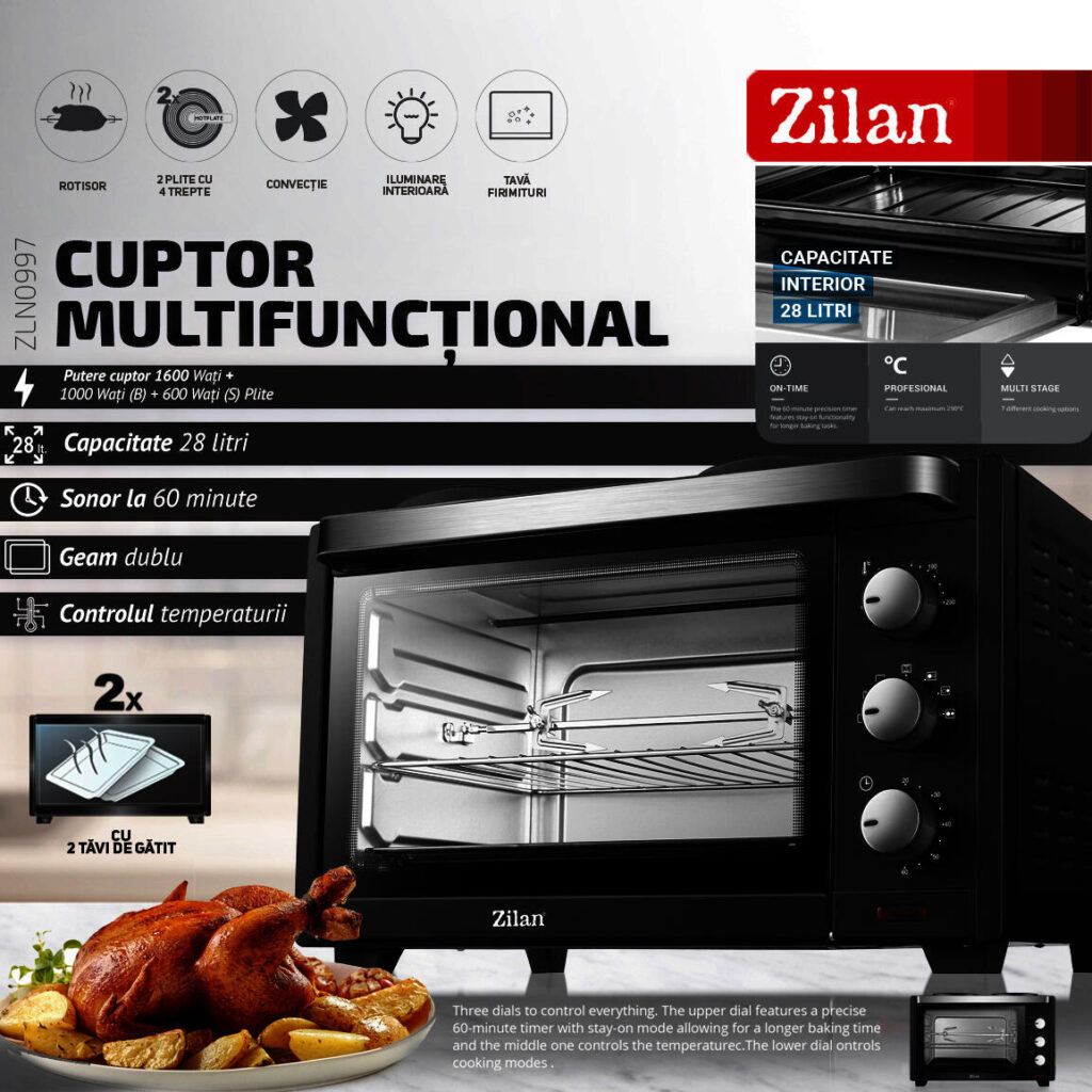 Cuptor electric Zilan ZLN-0997 YUSUF, 1600 W, 28 Litri, Temperatura Reglabila, Negru