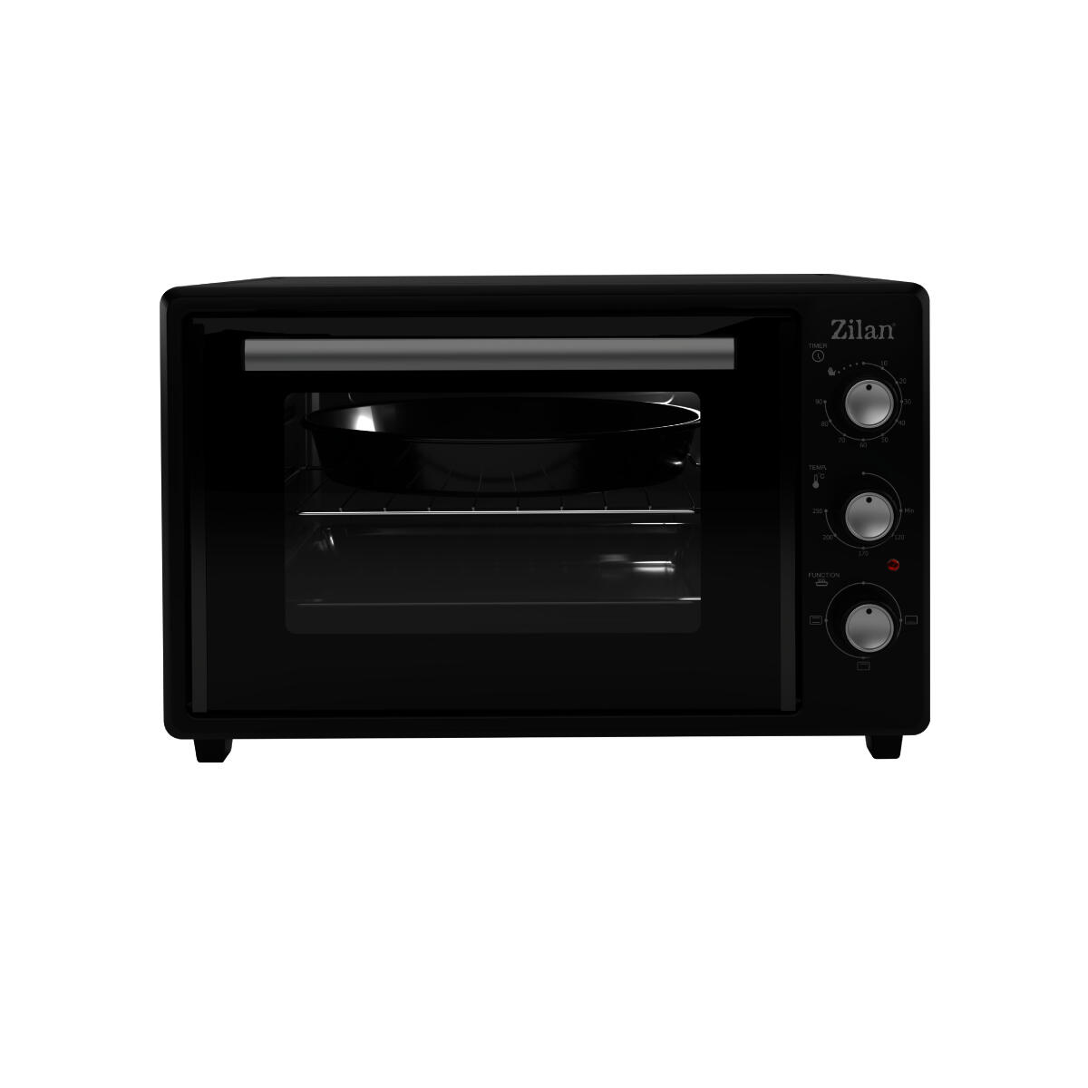 Cuptor electric Zilan ZLN5323 Gusto, Capacitate 35L, Temperatura maxima 250C, Timer, Element incalzire ascuns, Putere 1800W, NegruCuptorul electric Zilan ZLN5323 Gusto are o putere de 1800W, si o capacitate interioara de 35L, acesta atinge temperatura maxima de 250 grade C. De asemenea cuptorul este dotat cu temporizator de 90 de minute cu alerta sonora atunci cand s-a terminat timpul. Cuptorul electric Gusto beneficiaza de 3 functii diferite de gatire si functie reglabila pentru gratar.Peretii interiori din stanga si dreapta sunt acoperiti cu email, elementul de incalzire din partea de jos este ascuns de o placa emailata. Sticla frontala este rezistenta la caldura. Elementul de incalzire este de tip P.In pachetul produsului puteti regasi: 1x gratar din Cr-Ni, o tava patrata si una rotunda.Dimenisuni cuptorLatimeExterior 51 cm, Interior 37 cmAdancimeExterior 42 cm, Interior 34.5 cmInaltimeExterior 30 cm, Interior 22.5 cmLungime cablu80 cmDimensiuni gratar si tavi incluseTava patrataLatime: 37 cm, Adancime: 33.5 cm, Inaltime: 3 cmTava rotundaDiametru: 34 cm, Inaltime: 5 cmGratarLatime: 37 cm, Adancime: 33 cm