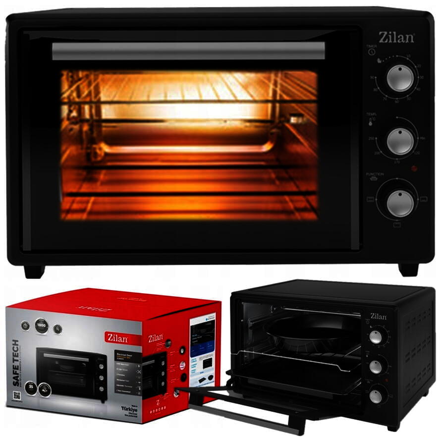 Cuptor electric Zilan ZLN8894 Negru, capacitate 35 litri, geam dublu, putere 1800 WDescopera versatilitatea si performanta superioara a cuptorului electricZilan ZLN8894,un partener de incredere pentru bucataria ta moderna. Cu o putere impresionanta de 1800 de wati si o capacitate generoasa de 35 de litri, acest cuptor este proiectat pentru a satisface cele mai exigente nevoi culinare.Cu o temperatura reglabila de pana la250 de grade Celsius,cuptorul electricZilan ZLN8894iti ofera versatilitatea necesara pentru a gati o varietate larga de preparate. Poti opta pentru gatirea la temperaturi scazute pentru coacerea lenta sau pentru temperaturi mai ridicate pentru prajire si rumenire rapida. Indiferent de preferintele tale culinare, acest cuptor poate face fata cu brio.Cu o capacitate spatioasa de35 de litri, cuptorulZilan ZLN8894iti ofera suficient spatiu pentru a gati mai multe preparate simultan sau pentru a gati mese complete. Este solutia perfecta pentru gatitul in familie sau pentru a pregati delicii pentru evenimente speciale.Temporizatorul cu o durata maxima de 90 de minute este un instrument util pentru a te asigura ca preparatele tale sunt gatite la perfectie, fara a le supraincalzii. Poti seta timpul necesar si cuptorul va semnaliza automat cand timpul a expirat, permitandu-ti sa te concentrezi pe alte activitati in bucatarie.Alte specificatii:Capacitate: 35 litriTermostat reglabil pana la 250 grade3 obtiuni de incalzire: Sus, jos sau simultanElement de incalzire din otel inoxidabilIndicator luminosGeam dubluInlcus: Tava dreptungiulare (36×33 cm), Tava rotunda (diametru 34 cm) si gratarPutere 1800 WDimensiuni:Inaltime32,5 cm exterior, 24 cm interiorLatime51 cm exterior, 37,5 cm interiorAdancime41 cm exterior, 34,5 cm interiorCablu85 cm