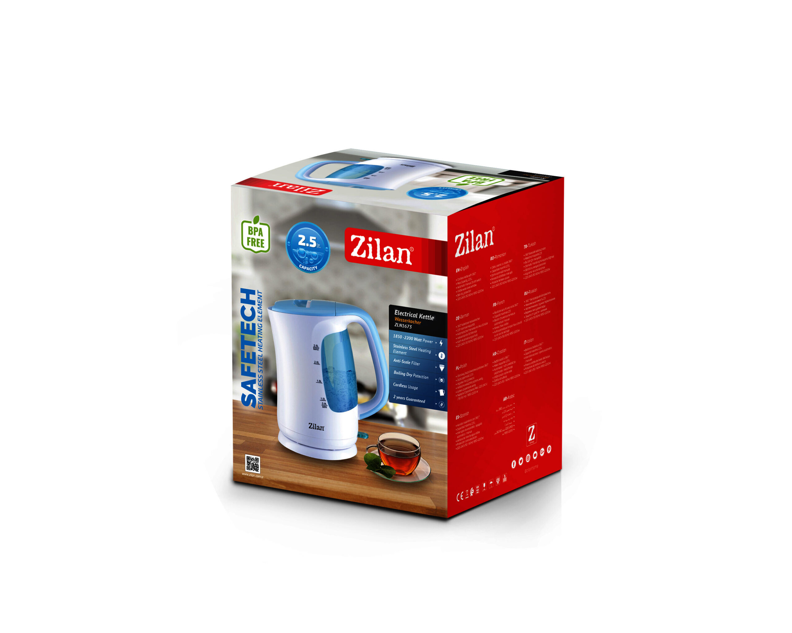 Descriere:Ceainic cu rotatie 360Capacitate maxima 2.5LOprire automata/manualaFereasta vizibila nivel apaProtectie fierbere-uscare220-240V 50/60Hz1850-2200 WMaterial carcasaPlasticCuloareAlbastruUtilizareRezidential