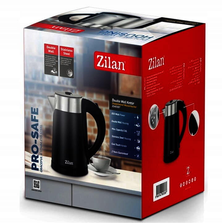 Fierbator electric Zilan ZLN3387 Negru cu pereti dublii, putere 800W, capacitate 0.8L, inox