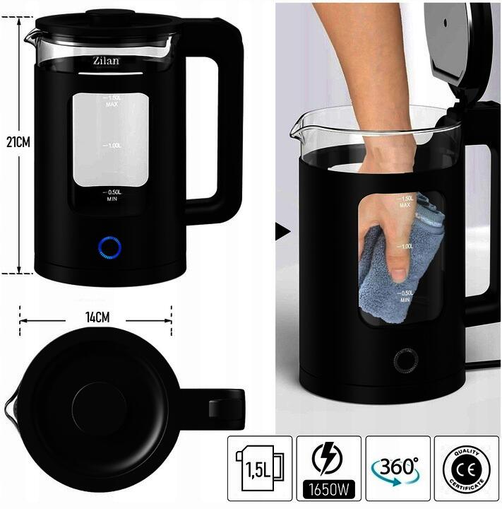Fierbator electric Zilan ZLN6128 Negru, capacitate 1.5 L, putere 1650 W, indicator luminos