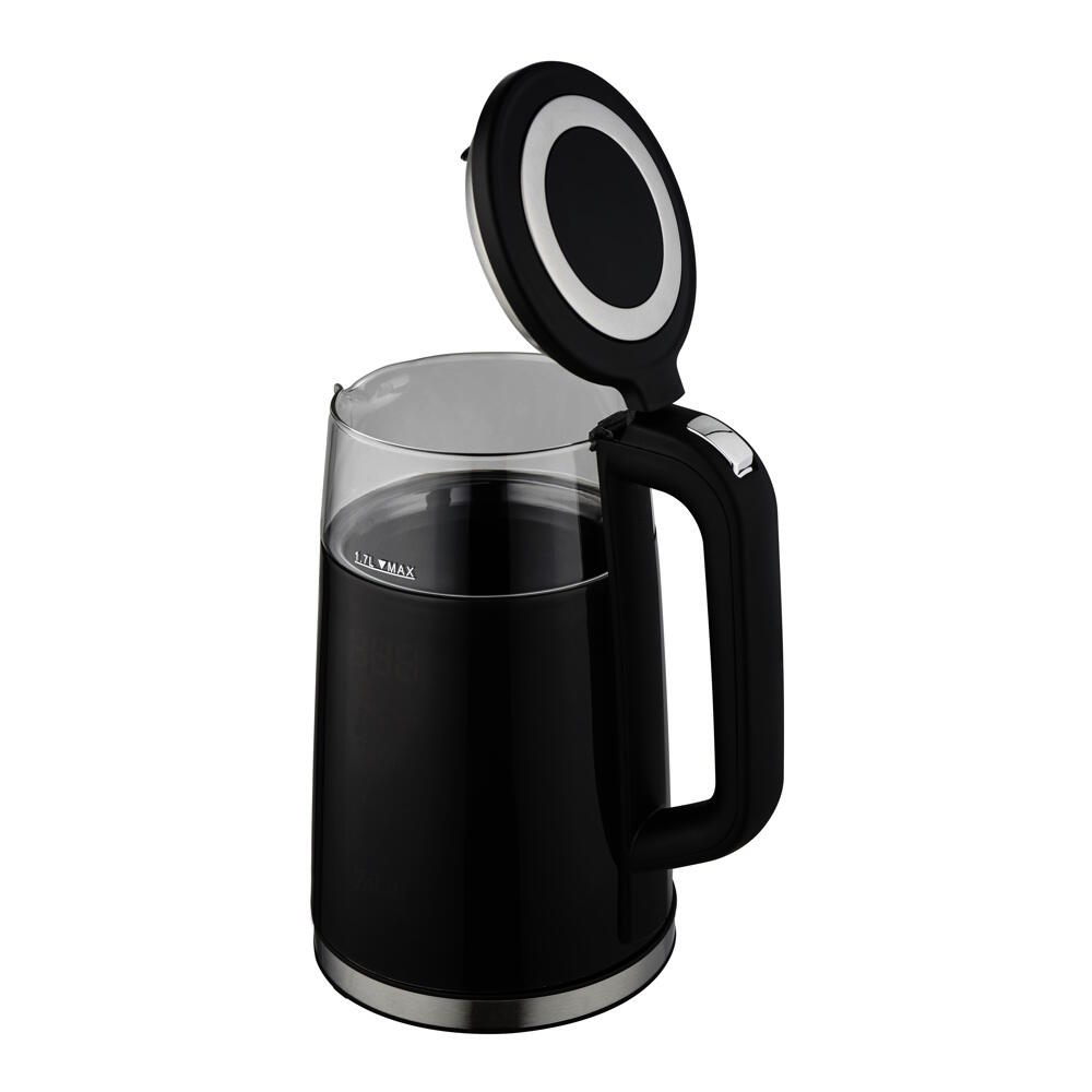 Are o putere de iesire de 2200 W. Protectia la supraincalzire asigura ca fierbatorul se opreste automat cand este apa la fiert, oferind utilizatorului un sentiment de siguranta. Design modern, minimalist. Date tehnice: – Capacitate: 1,7 l, min. 0,5 l – Senzor de temperatura – Functie generatoare de caldura – Selectarea temperaturii apei: 100 90, 90 ℃, 80 ℃, 55 ℃, 40 ℃ – Baza pivovanta – Alimentare 220-240 V ~ 50/60 Hz, – Putere: 2200 WAlte caracteristici:Capacitate: 1.7 LitriBaza rotativa 360°Element de incalzire din otel inoxidabilPerete dublu format din strat de plastic la exterior si strat de inox la interiorEcran digital4 pre-setari de temperaturaFunctii de mentinere a calduriiPornire cu doar o atingereProtectie anti uscareTemperatura reglabila intre 40 – 100 grade
