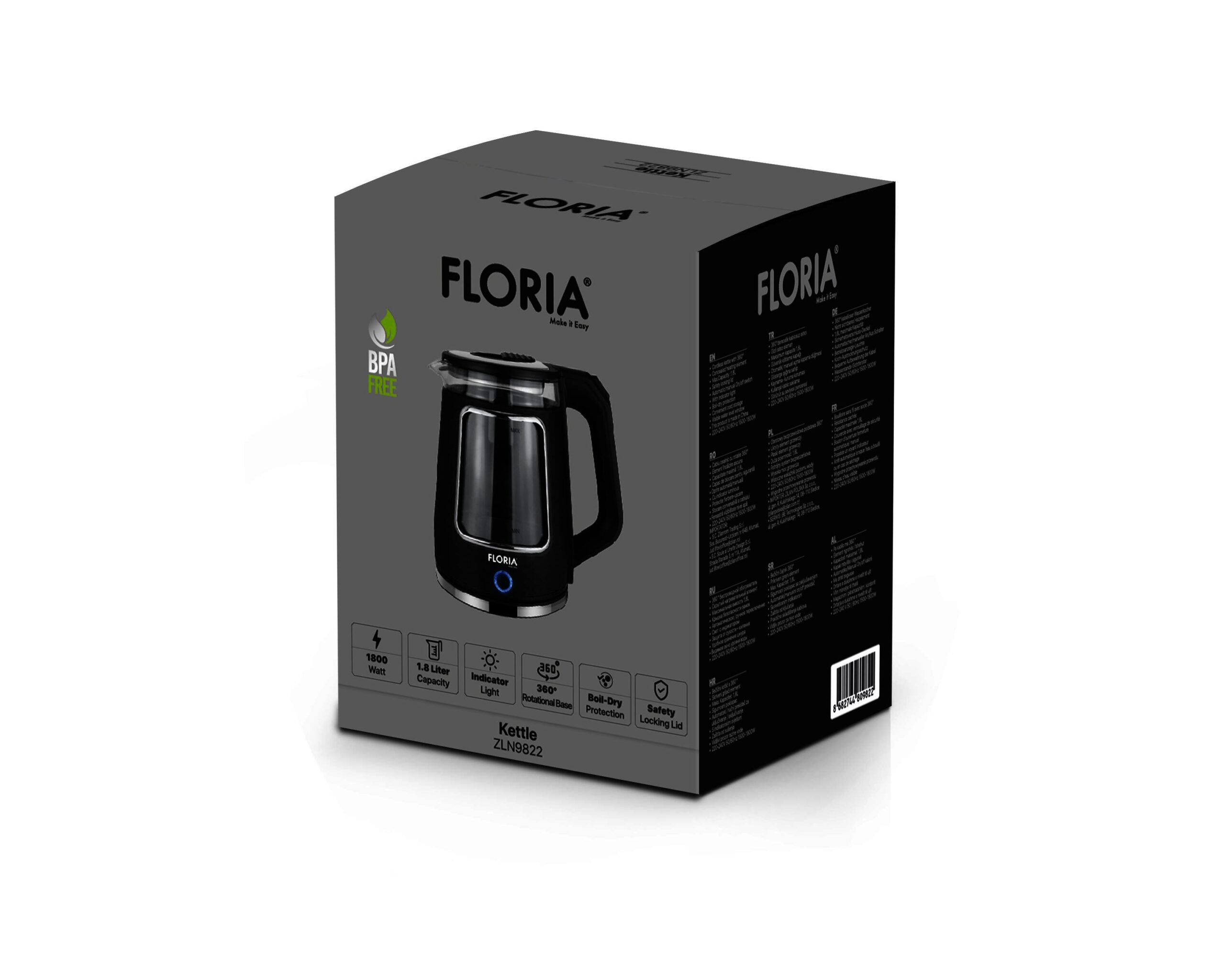 Fierbator Floria ZLN9822, Capacitate 1.8L, Baza rotativa 360°, Oprire automata/manuala, Indicator luminos, 1800W